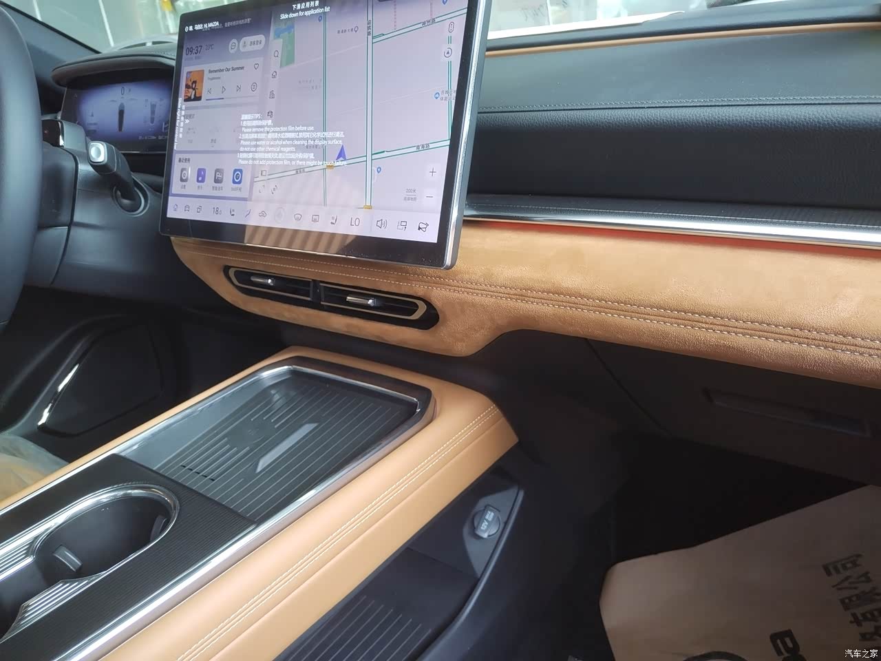 内饰方面的话,那最大的感觉就是棕色的真皮和翻毛皮的一个设计,其实档次看起来非常高,而且座椅的话,整体的包裹性也非常好,我这次去上海自驾回来,感觉还是非常好的