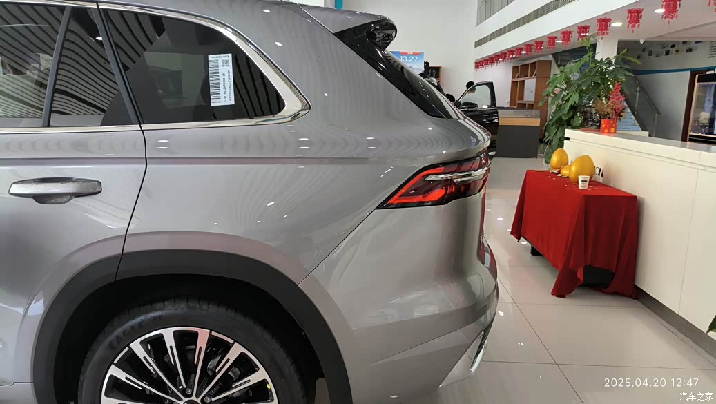 外观上,直瀑式镀铬格栅搭配矩阵LED大灯,很有辨识度。车侧线条流畅,20英寸铝合金轮毂造型独特,运动感十足,搭配245/45 R20的轮胎,抓地力强。车身长宽高为4770×1895×1689mm,整体显得大气稳重。配置上,有电动后备厢、感应后备厢、车顶行李架,还有无钥匙进入和启动系统,日常使用很方便 。