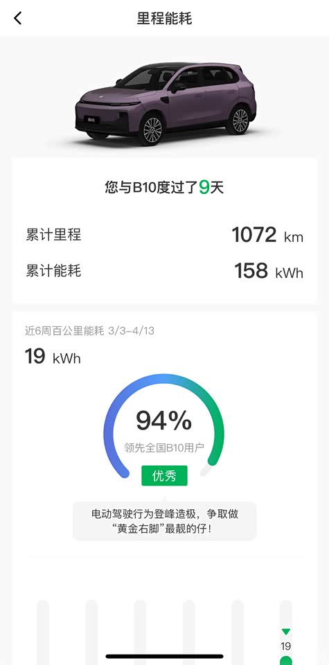 B10开起来的感受简单说就是:好开!160KW电机动力充沛!加速超车毫无压力。 舒适性有保证的前提下,操控也不错。 B10座椅很细腻,搭配这套和玛萨拉蒂团队共同调教的底盘,各种路况驾驶舒适性可以打个80分以上(满分100)。 行驶过程中的转弯、掉头、变道支撑性都不错,方向盘轻重正好(我用的舒适模式)指向也挺精准,这个驾驶体验有点越级的感觉了! 美中不足的可能就是细碎颠簸过滤没那么好,路况差点的路段胎噪比较明显。(十来万我是不是要求有点太高了……哈哈) 前几天开了一下高速,最快时速开到130km左右,整车稳定性也是ok的!牢牢吸附地面,不会给人飘的感觉。