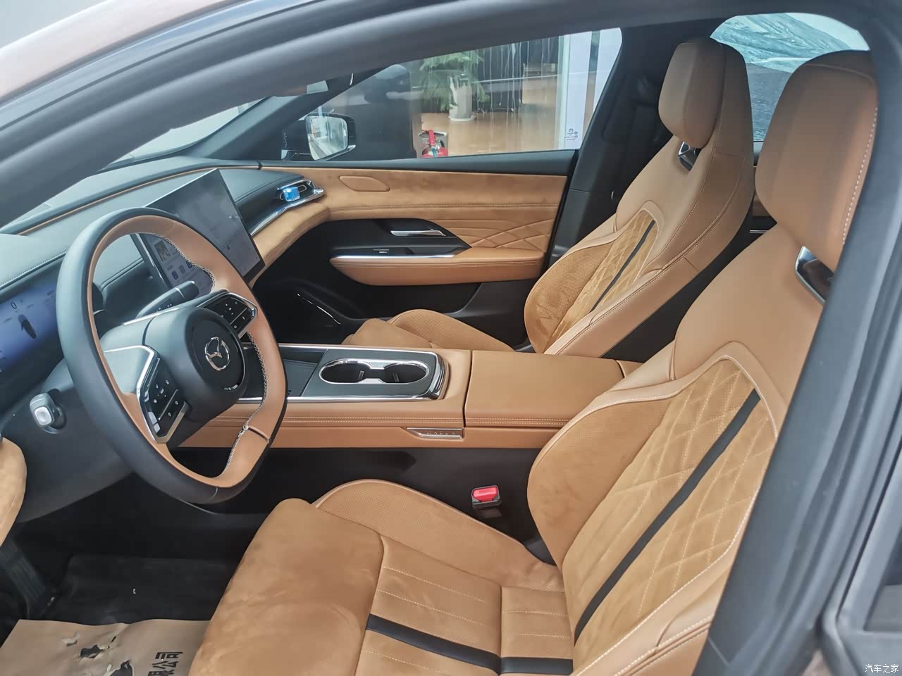 刚开始买车的时候在网上看了看,觉得这个车还挺好看的,抖音上也一直说这车现在便宜了,就想着去店里面看看实车咋样?有没有像网上说的那样好。 趁着休息的时候就去店里看了一下,看到实车就觉得这车确实挺好看的,销售讲了半个多小时,当时听着也有点懵懵的,销售也一直推荐让我试驾。想着来都来了,那就开开试试吧。试驾的时候,试驾的人也一直在说操控,也讲了很多细节,当时就觉得这车还挺好开,不像别的电车刹车非常猛。开了十几年油车了,还怕会不习惯,但是马达这个车开起来真心不错,当时就有点心动了! 试驾回去后让销售给我算了算价格,正好我名下有个报废车,一算十一二万就能办齐,B级车空间也比较大,而且是后驱的,这个价格办齐确实挺划算的。然后又看了看细节,赶紧又让销售给我讲了讲车,听完以后,我和媳妇儿决定就这个车了,不看别的了! 当时买车挺速度的,还怕买回来会后悔!但开了几天以后,觉得这个车真不错。我买的是个中配的,跑起来确实胎噪声音比较小!前两天正好带孩出去玩,上了趟高速,在快车道上跑了跑,车跑起来确实非常稳当! 全景天幕确实有点晒,车内温度肯定高!全景天幕确实还是香! 正好买回去也让朋友看了看,朋友根本不相信补贴过后我十二万左右就办齐了。这车内饰也比较高级,用的翻毛麂皮,B级车空间也不错,家里人坐后排也不憋屈,而且这个音响音效真不错。还有智驾,虽然说不咋用吧,秉承着可以不用,但是不能没有,安全性能也高。充电的话晚上充五个小时就能充满电,我也往油箱里加了点油,专门试了试增程器发动的声音大不大,确实还好没有太明显的声音!油耗大概跑三点多吧,确实比油车省多了!店里面的工作人员态度也非常好,开着也放心,只能说马自达没让人失望!