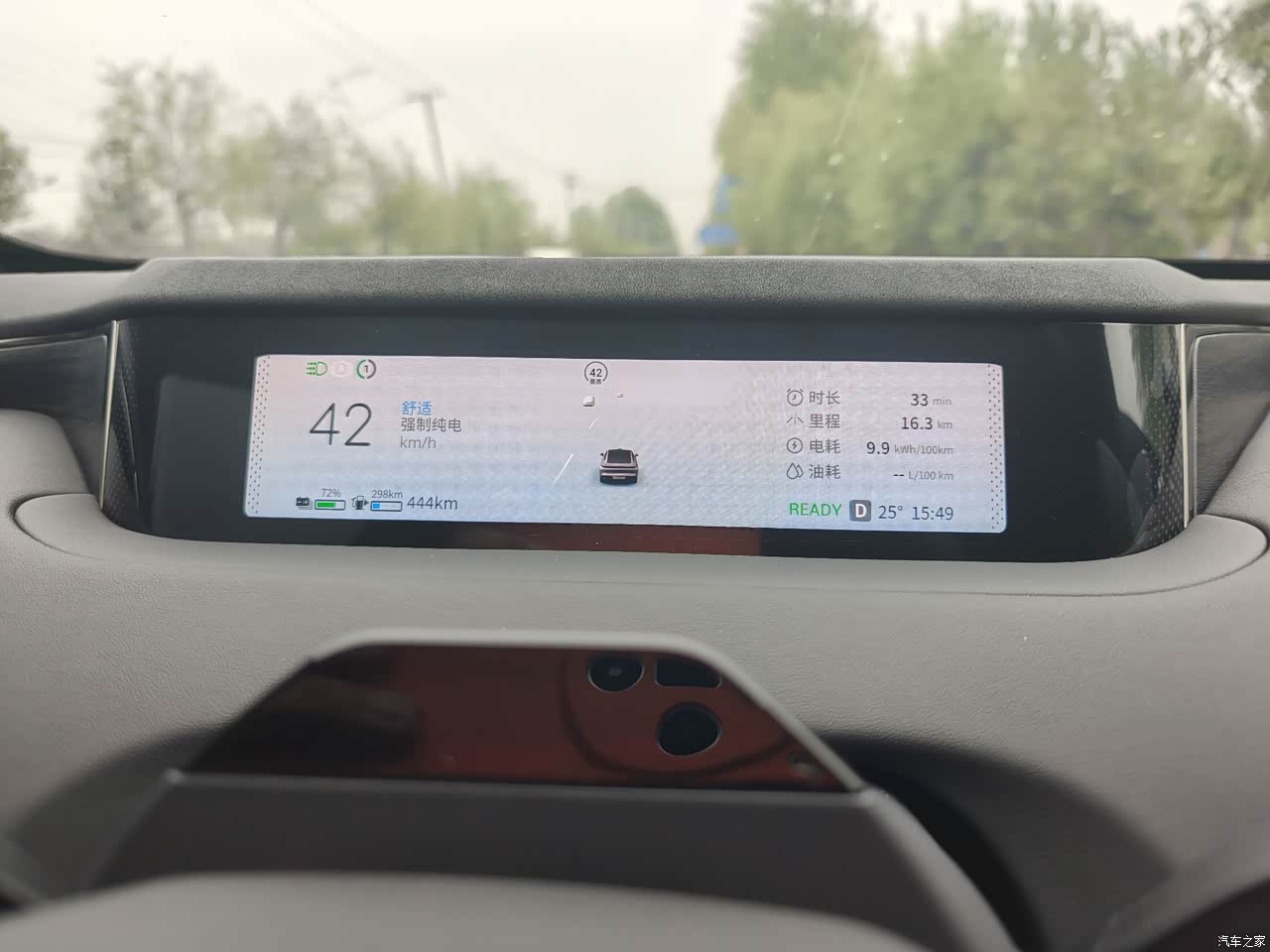 在城市道路上,时速40/KM左右的速度行驶,纯电电耗竟然跑到了10以下,这点是令我非常意外的,要知道这款车重两吨多,整体续航还是非常扎实的,基本做饭了1:1