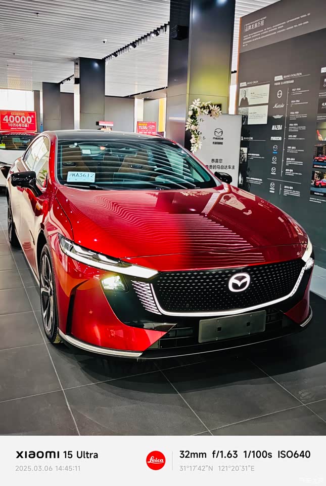 外观设计上,EZ-6继承了马自达经典的Kodo魂动设计语言 前脸设计:盾形大嘴式中网搭配发光U型灯条,既增强了视觉冲击力,又提升了夜间辨识度。 车身侧面:流畅的溜背式车顶线条,搭配双腰线设计,勾勒出了一种蓄势待发的动感姿态。 尾部设计:双层贯穿式尾灯与掀背式尾门相结合,科技感与实用性兼具,进一步强化了整车的运动气息。 就是一个字帅,但是尾部很像深蓝SL-03