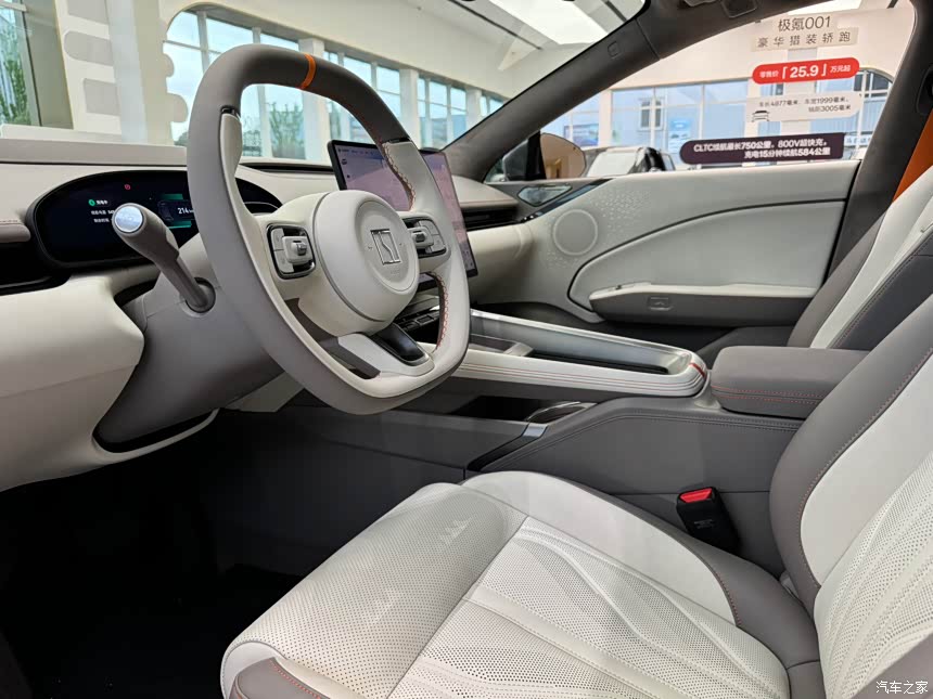 极氪007GT座舱设计简洁而现代,方向盘采用了多功能设计,握感舒适。一个方向盘就配备了音量控制、巡航控制、电话接听等常用功能。同时,车内的储物空间设计巧妙,如中央扶手箱、门板储物格等,都充分考虑了实用性和便利性。