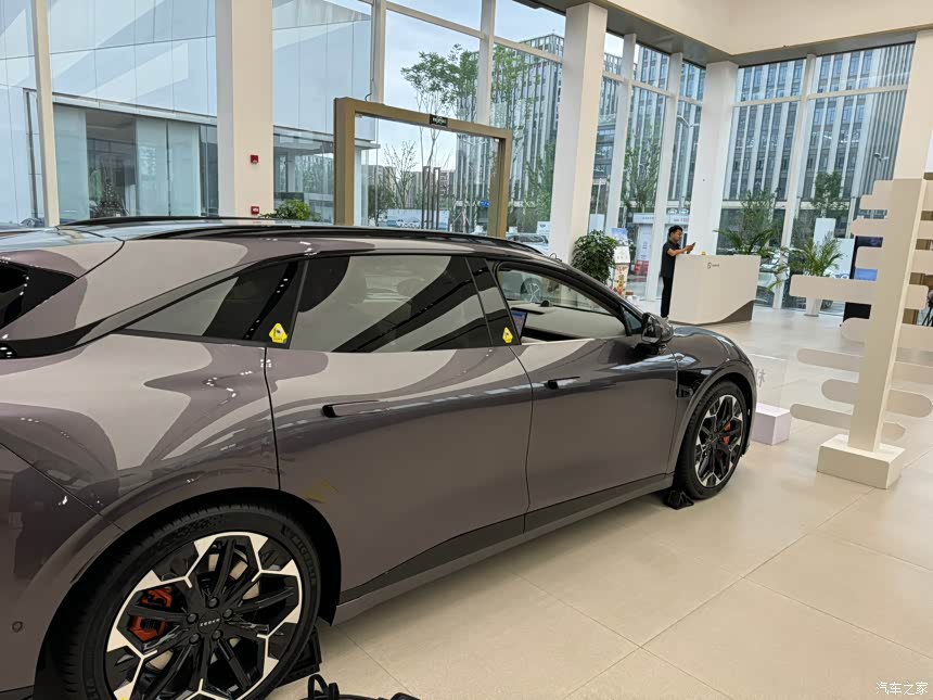 当看到极氪007GT实车,我就被其新颖的颜值所打动。作为一辆旅行猎装车,极氪007GT的外观设计堪称“行走的艺术品”,整个造型与车身比例在大街上都非常吸人眼球。我相信每一位喜欢猎装车的消费者,都欣赏它们低趴宽体的霸气颜值。车前脸的贯穿大灯特别抢眼,大灯、日行灯与交互灯带相融合,科技感与辨识度拉满,而侧面是我最喜欢的角度,从车头到车尾的腰线微微上扬,配上隐藏式门把手和20寸大轮毂,运动感十足。我试驾的星际紫色实车比图片更好看,阳光下带点金属质感,颜色“自带高级滤镜”。