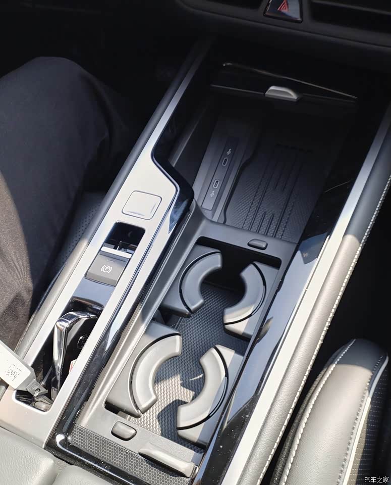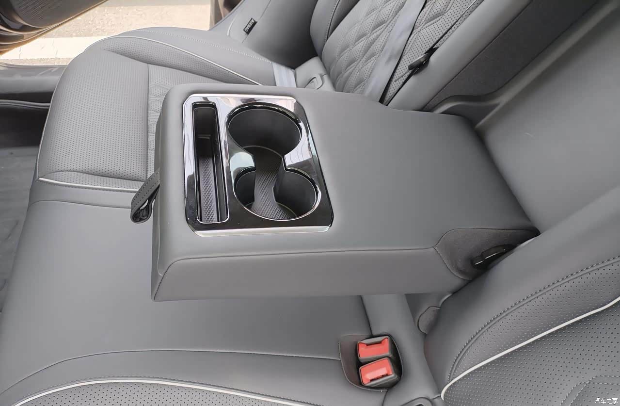 内饰为黑色皮坐椅,做工细腻,质感不错。方向盘采用真皮材质,无论是质感和手感,都是可以的。前排和后排,杯架的设计符合实用性要求。前排扶手箱储物盒,扶手盖为左右两边开关,这个设计倒是比较不常见,大多车型的扶手箱盖都是后翻式的,设计比较新颖。前排的杯架,设计有盖板,不放杯子时,盖板合起来后,看上去更美观。