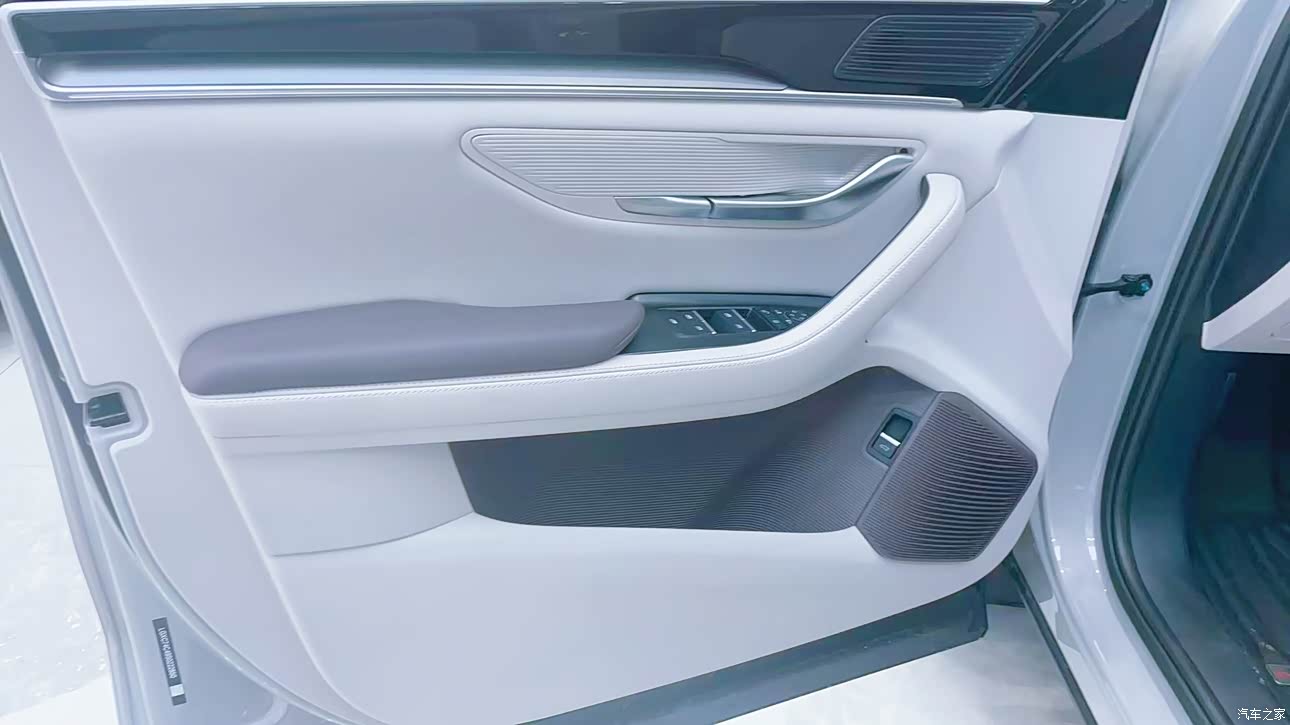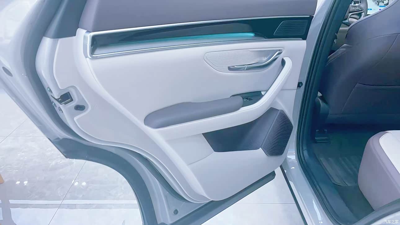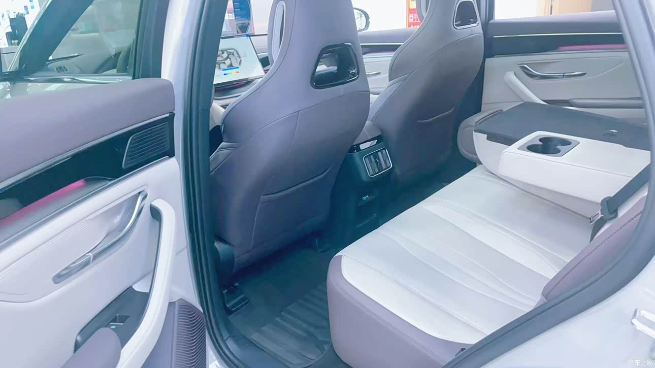 前排的多层隔音玻璃以及后排的侧隐私玻璃将车内的环境塑造的非常具有隐秘性,坐在车里就感觉进入了私密空间一样,试驾过程中外面的嘈杂声、人杂声都不会传进来,而且我觉得这个中控也蛮高级的,尺寸很大,视觉观感非常好,触摸的时候屏幕的材质也很棒,冰冰凉凉的感觉,周边的做工细节很到位。