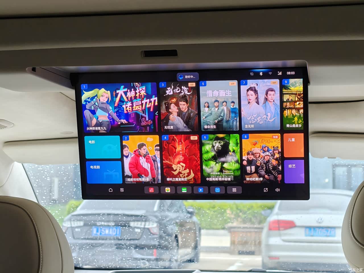 买MPV就是为了空间而去买的,对于人多的家庭来说,车辆的空间实在是太重要了,像岚图梦想家这样的空间还是比较宽裕的,就算是第三排坐人也是轻轻松松不拥挤,是二排的过道还是不够大,我最喜欢的还是他这个吸顶屏,以前孩子坐在车上总是闹腾,现在我在只要打开电视,他看着大彩电。安安静静的坐在那里,我开车也不会分心