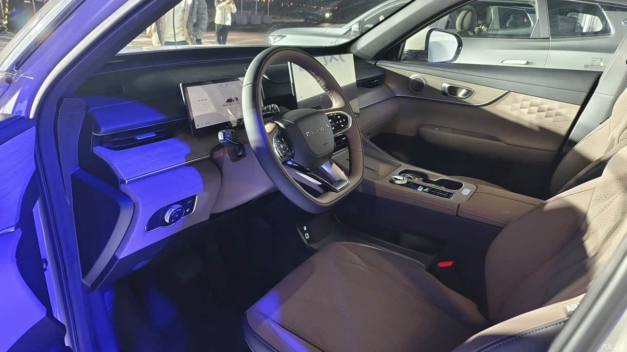内饰设计简约大气,很多软包包裹 ,黑色和棕色搭配,也显得非常高级, 15.6 英寸中控屏搭载高通 8155 芯片,反应和分辨率都非常的高,主驾驶前方也是全液晶仪表显示屏,分体式仪表盘非常舒服和简约,座椅包裹性不错,尤其是副驾驶女王座椅非常舒服,怀档我也挺喜欢,我觉得挺方便,还能给中控台布局简化,三种模式切换也让出行更无忧。