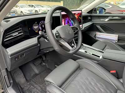 新迈腾的内饰也有很大的提升。新颖的怀挡设计,让操作变得轻松自如。15 英寸 2K 中控大屏、10.25 英寸液晶组合仪表以及 11.6 英寸副驾屏,一同带来极具震撼力的视觉冲击。