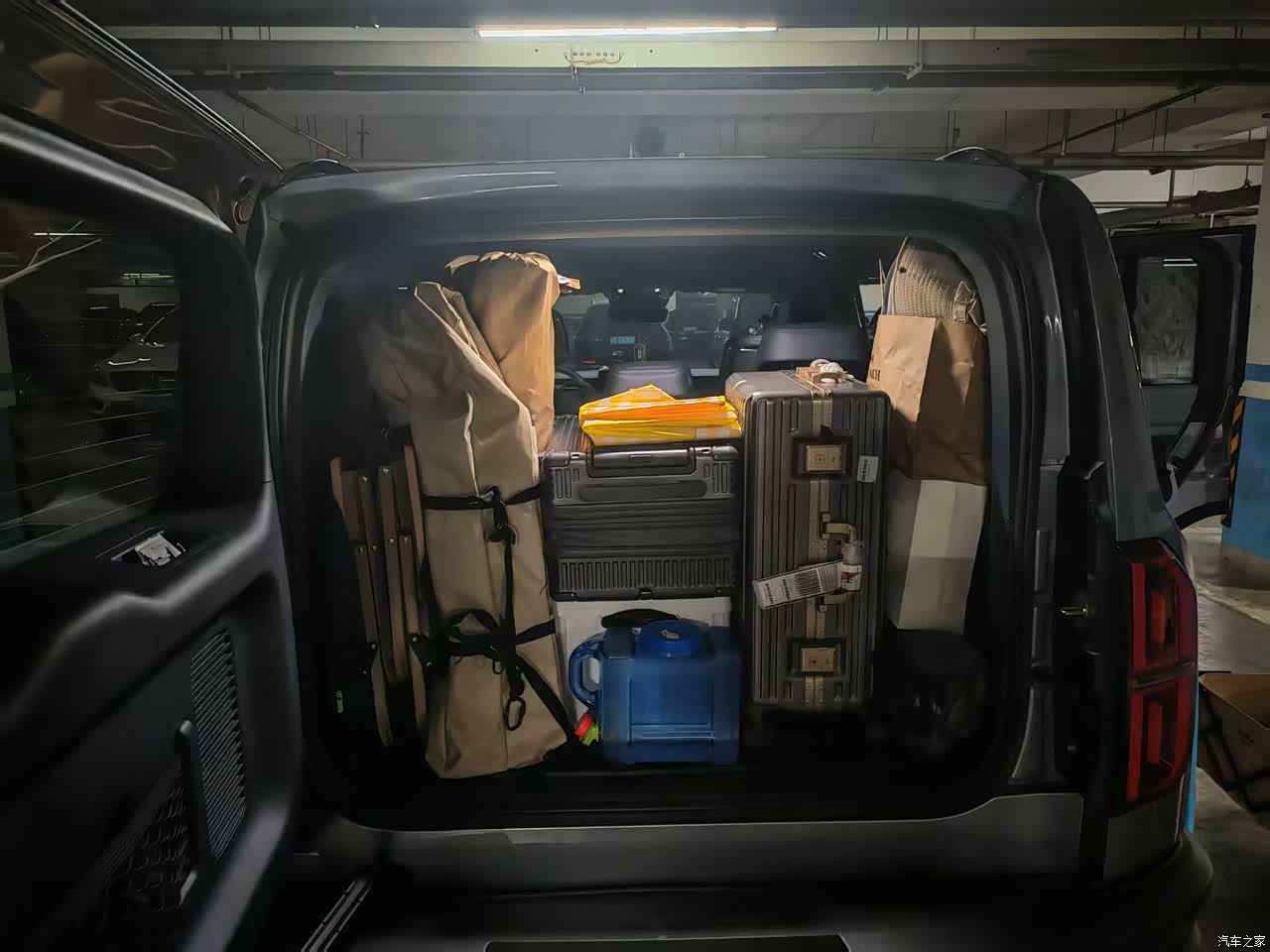 整体空间不错,前后排兼顾到了,我一般2人长途自驾出门,物资可以带很多,满足户外持续五天左右都是足够的,有人说后备箱小,我觉得还行,就是要会利用纵向的装载空间,只装平面的话,纵深肯定比不过轿车,但是纵向装在整体的装载能力很强的,竖着装整体体积更大,而且装大件也方便很多。