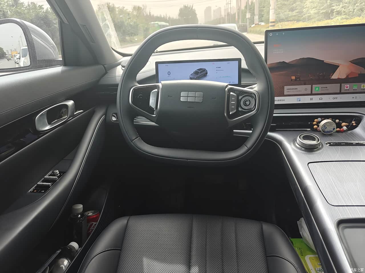 整体内饰简洁大气,吉利的审美还是可以的,个人非常满意。 1.颜色 白色内饰的颜值很高,不过怕脏为了好打理,最终选择的是薄暮蓝。它虽然叫薄暮蓝,其实是黑偏蓝的感觉,整体颜色比较深。 2.方向盘 双D形的方向盘我原以为需要好好适应一 段时间,结果上手并没有什么不适的感 觉。我习惯右手搭方向盘上边开,平的反 倒搭起来比较舒服,单手掉头转起来感觉 还行,我个人觉得没什么问题。 3.氛围灯 没有照脚灯,扶手箱里没有灯,中控下方 也没有灯,晚上想找个东西还得打手电,几个小灯能值几个钱。