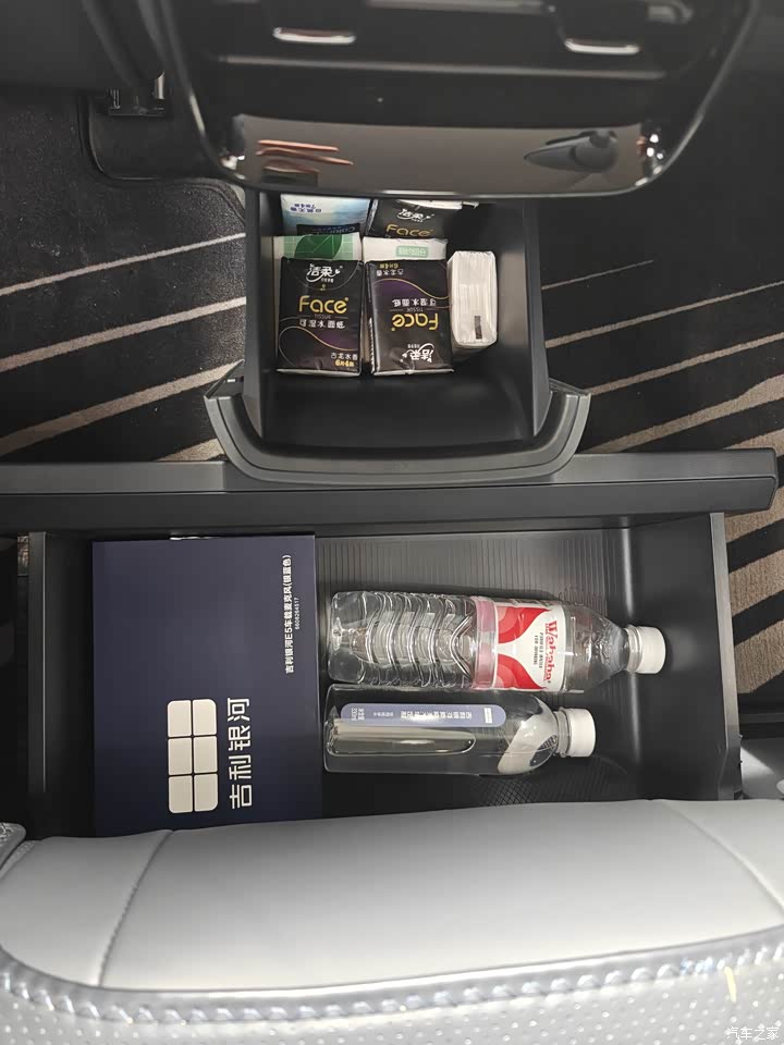 后排出风口和座椅底下有两个小抽屉,这个一般车都没有,门板上的储物槽也开的很大,再加上中控台下方的镂空设计,座椅背部多功能袋等,增加了很多储物空间。