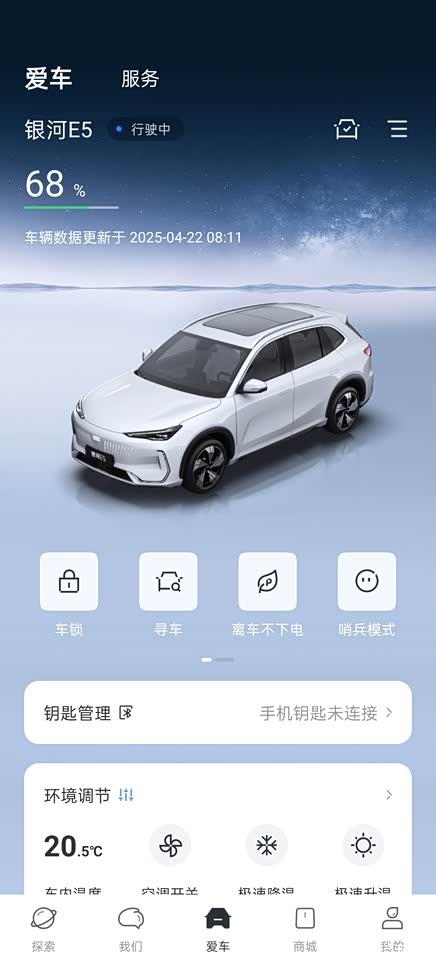 常规的控制都有,厂家也一直在对app做优化,提车到现在,增加了桌面小部件,优化UI设计,增加了驻车拍照,app远程开哨兵模式等,蓝牙钥匙也增加了很多选择和优化。