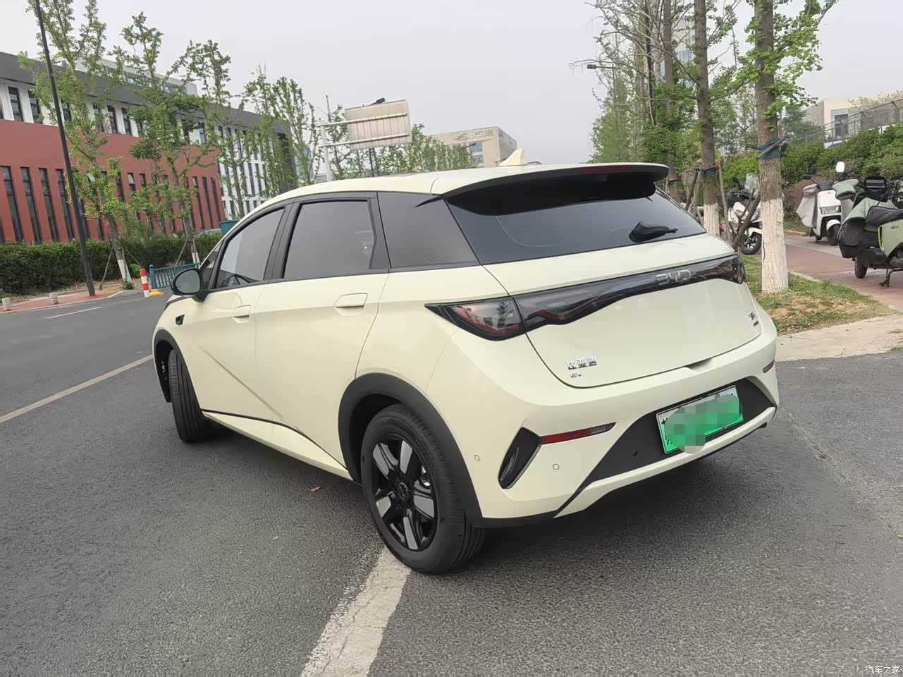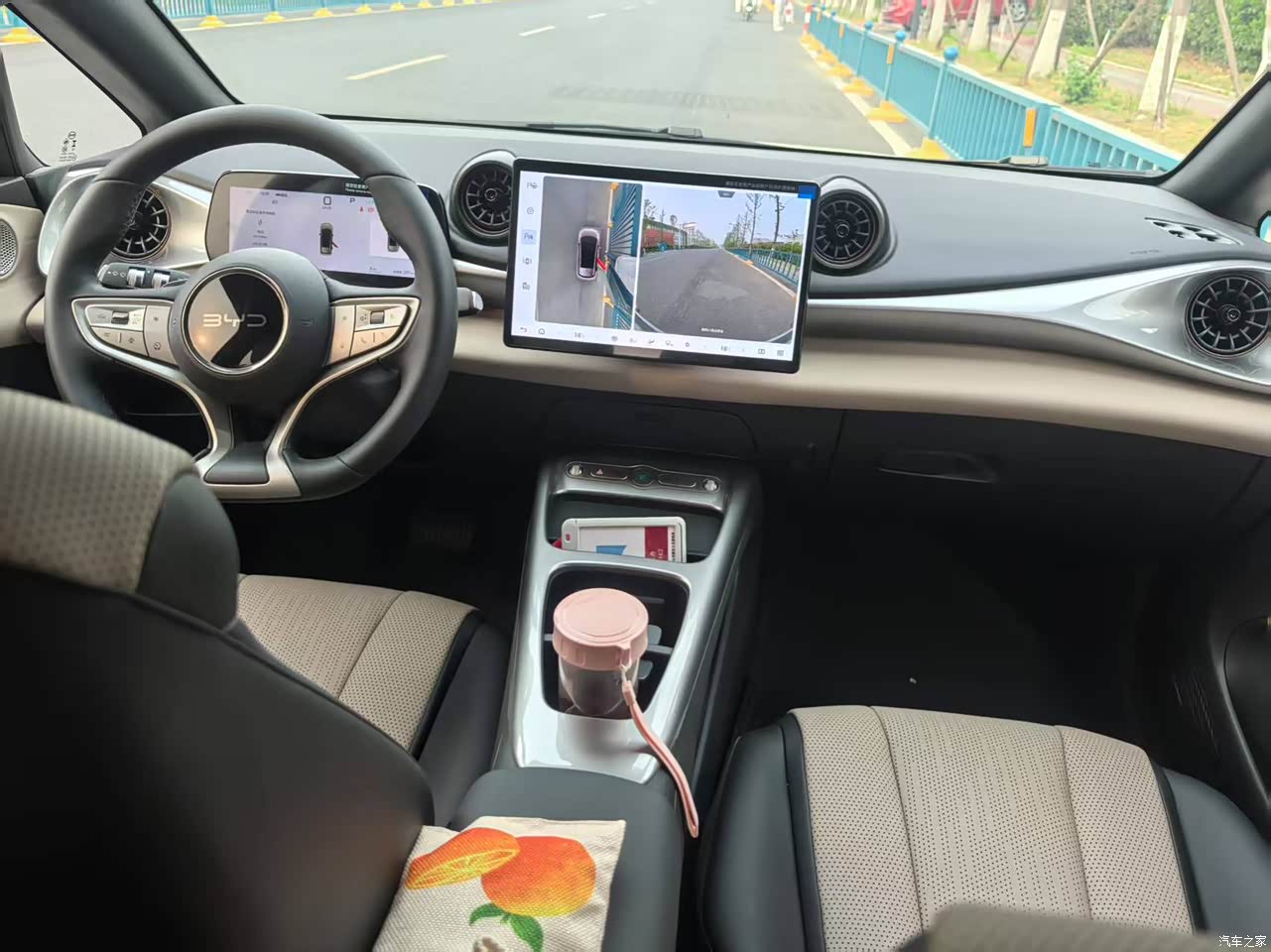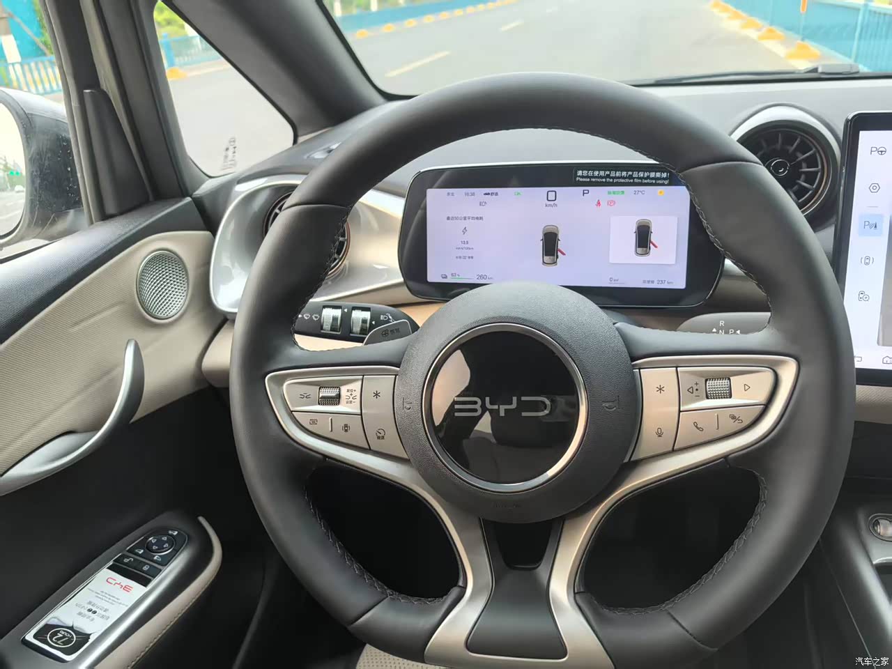 海豚的空间方面设计非常合理。像我我身高 176cm,坐在驾驶位的话头部大概还有一拳的空间,所以一般不会觉得压抑,腿部空间也能自由伸展。后排空间也还可以,腿部空间大概一拳左右,海豚毕竟是一款小型车,这样的空间表现也是符合预期。
