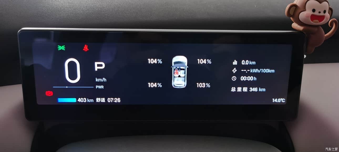 快充充满,然后跑了330公里,表显剩余60公里,天气暖和的时候估计表显和实际续航1比1。冬天的续航有待验证。充电速度,用7kw慢充从百分之15充到百分之100,用了6个小时。这两天电耗就在11.5每百公里左右。冬天的情况需要拭目以待。
