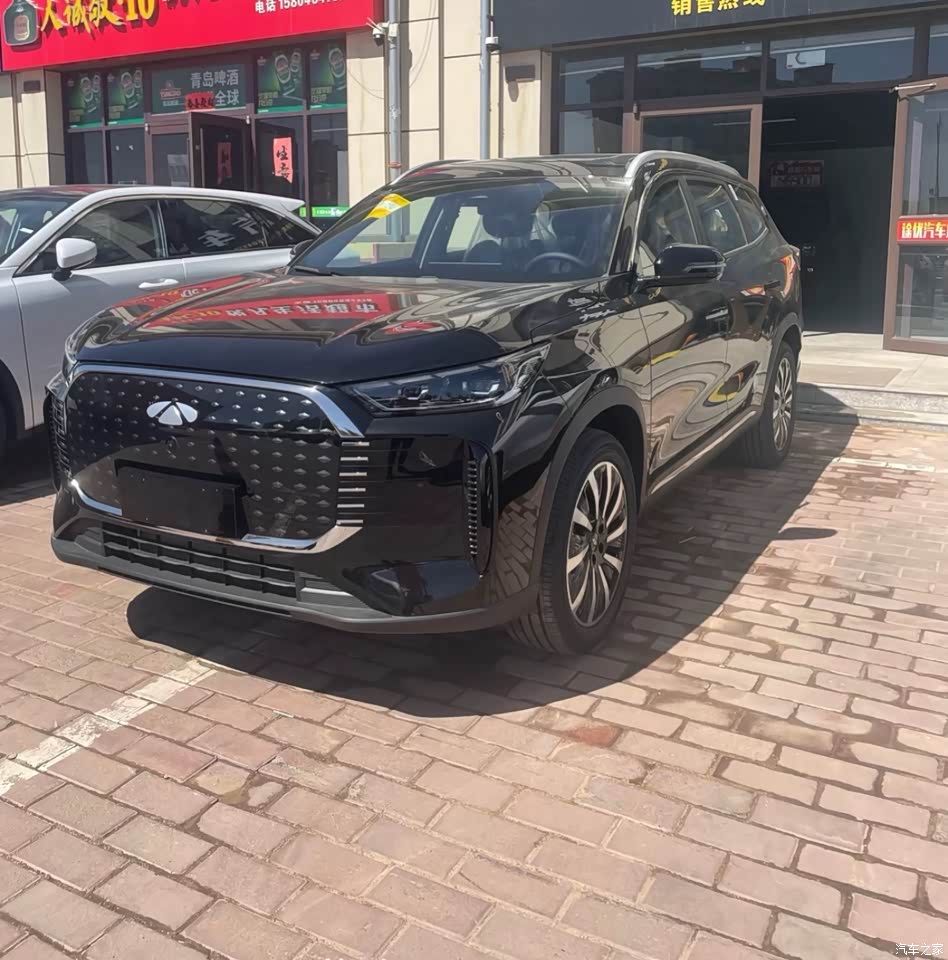 外观部分: 试驾前看了一下展车,青竹灰的颜色搭配,看起来非常协调,在光线不是很足的情况下,是大部分青色,要是在太阳阳光充足的情况下,车漆会带一点淡淡的灰色,感觉这主打车漆很高级啊。但试驾车就是黑色的了。前脸是和瑞虎8plus整体造型差不多的。整个前中网是点阵的资料全包裹。搭配两边狭长的大灯组。显得整个前脸非常大气十足。车身侧面比较中庸,说不上哪里好,也说不上哪里不好,没有复杂的线条感,给人一种比较饱满的状态了。尾部我并不是很喜欢,原因是贯穿式尾灯和尾部造型。