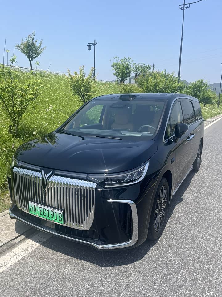 实车的第一眼确实让人印象深刻。前脸的超大直瀑式格栅搭配贯穿式灯带,远看像一台电动版埃尔法,我提车后第一次开去公司地库,就被保安和同事围观,甚至有人误以为是进口豪车。