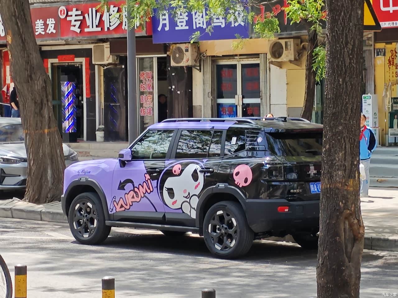 自由者的外观个人觉得还是非常满意的,整体的设计兼具优雅与实用性。前脸以简洁的线条和大尺寸的进气口为特色,搭配细长的LED大灯,整体效果大气。进气格栅采用镀铬饰条装饰,与两侧的LED大灯组融为一体,使得整个前脸更加大气磅礴。车身侧面采用了高腰线的设计,搭配流畅的车顶线条车身姿态非常硬汉。车尾设计则以简洁的尾灯和饱满的车尾造型为亮点,内部采用LED光源,点亮后呈现出均匀细腻的光影效果。 对了,提车后还去做了整体彩绘改色,虽然本人性别男,但是奈何家里有个喜欢库洛米的媳妇儿和孩子,happy wife happy life!