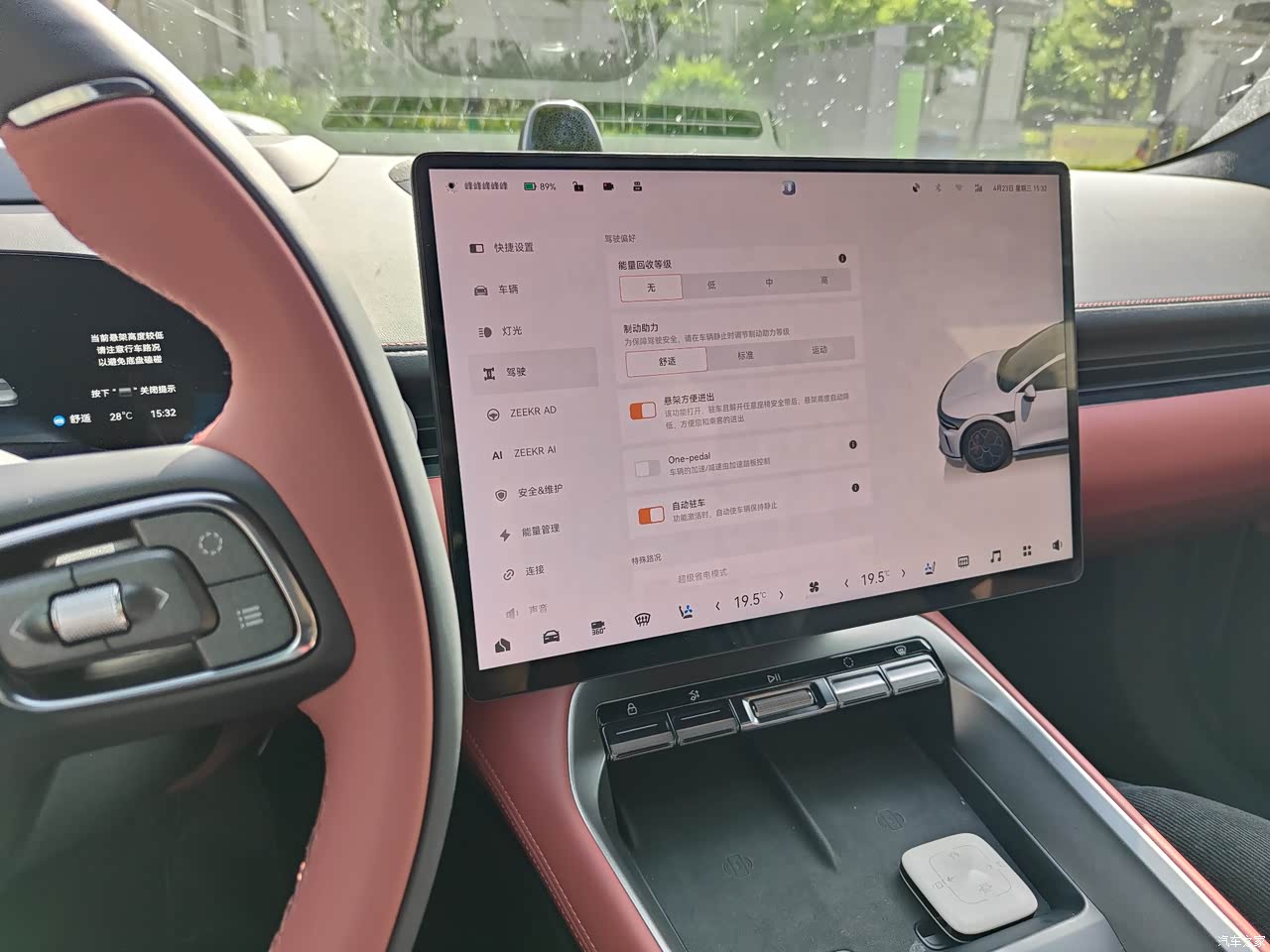 中控屏手势操作略有延迟,不过HUD投影清晰度惊艳,导航箭头能直接“贴”在真实路口上。极氪007 GT的智能化表现属于硬件拉满,软件够用但还有潜力的类型,相比普通版007更强调性能调校,但智能座舱和驾驶辅助的底子依然在线。 车机系统菜单逻辑更简洁,但手势控制偶尔误触。华为HiCar和无线CarPlay兼容,目前只有百度地图。 007GT版可选装激光雷达, 能识别红绿灯和斑马线行人。自动泊车功能很不错,在空旷地上和商场地下试了试,垂直车位识别率高,感受很不错。还有带了代客泊车功能,这次没有试。 连副驾驶前的手扣箱都可以语音开启关闭,居然找不到实体按键。