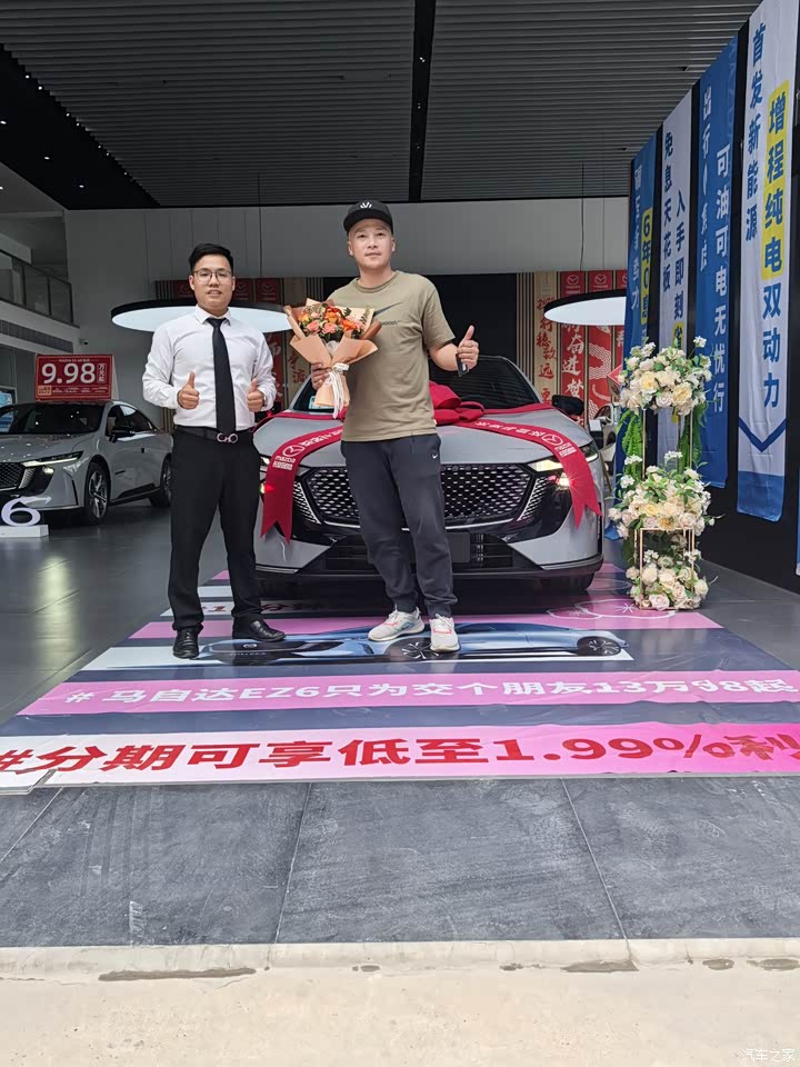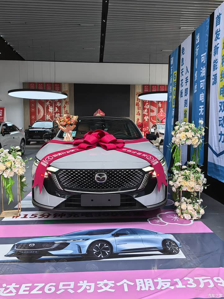 近两个月来不少在网上关注新能源的车子,各种网站和直播间都看过不少,最后被马自达EZ-6吸引了,首选第一眼肯定是车子的外形设计挺好看,然后看直播也有各种补贴活动,这不得去店里一探究竟,到店里看车的时候,发现内饰风格我也满意,材质很特别,颜色也显得豪华大气。到店还试驾了一下,顾问给展示了不少功能,我觉得还挺有必要,所以我最后选择了增程顶配的智尊版,毕竟买了之后我打算好好开个几年的,还是得选择功能实用好用开的舒服的