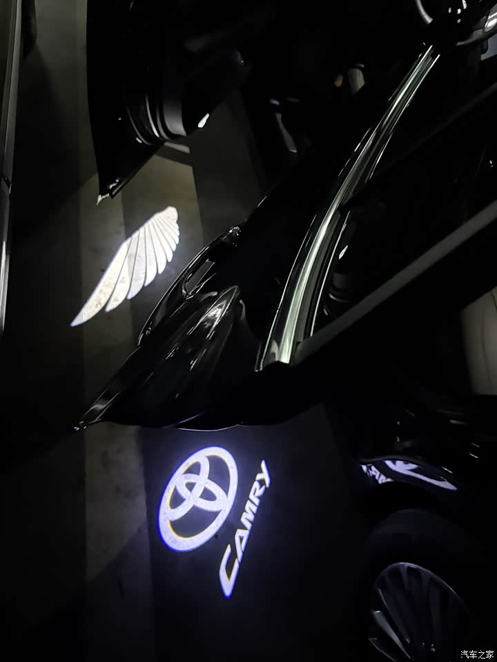 这一代的凯美瑞真的是和以前有很大的变化。变得更运动,更年轻,更时尚。大胆的设计语言让他能保持b级车商务属性的同时,还有了一丢丢的优雅。这个大灯点亮之后真的很好看。像一对翅膀。然后我给车门加了迎宾灯。是车友推荐的,效果很不错,大家可以看看。