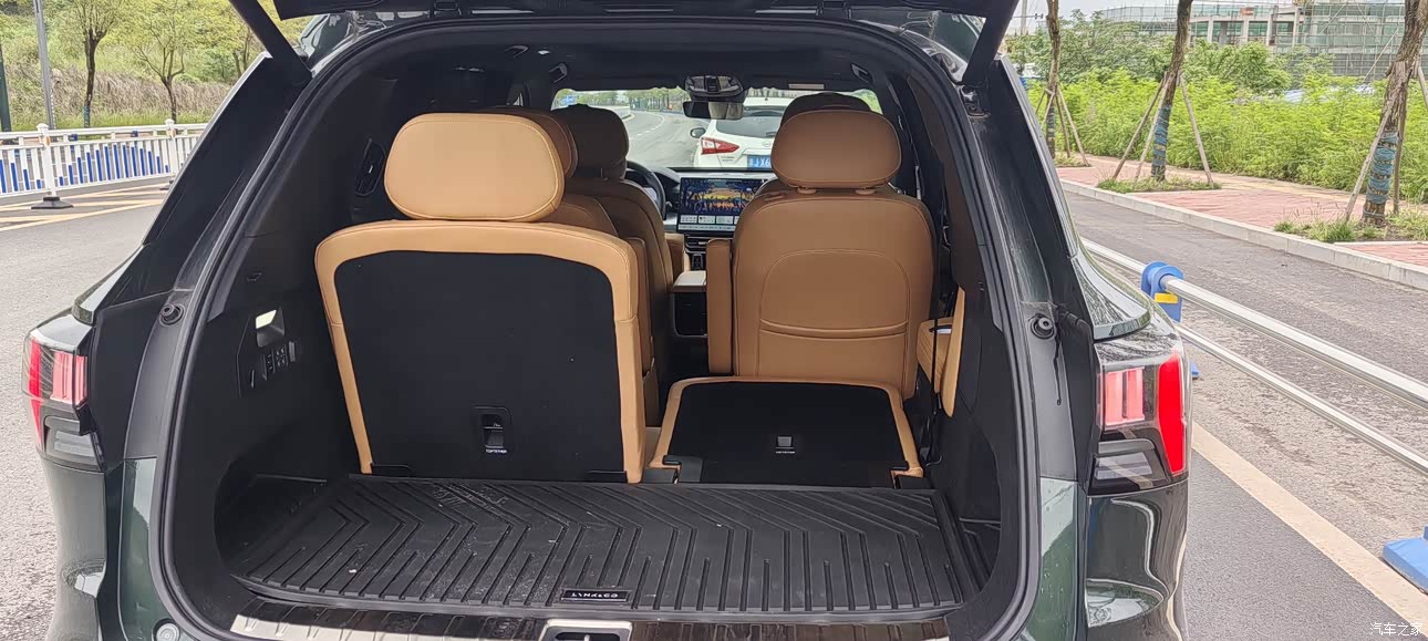空间宽敞,满足全家出行需求 领克09 EM-P的车身尺寸为5042+1977+1780mm,轴距达2984mm ,这样的“大尺寸”赋予了它宽敞的内部空间。坐进驾驶座,头部和腿部都有充足的活动空间,调整好座椅后,视野也十分开阔。 来到第二排,体验更是令人惊喜。腿部空间相当充裕,轻松就能翘起二郎腿;头部空间也很可观,不会有丝毫的压抑感。而且,第二排座椅支持前后和靠背角度调节,还配备了座椅加热、通风、按摩等功能,舒适性堪称一流。第三排的空间在同级别车型中也表现出色,虽然比不上前两排,但应急坐个成年人完全没问题。并且,第三排座椅也支持电动调节,方便乘客找到舒适的坐姿。当第三排座椅放倒后,后备箱能形成一个超大的储物空间,日常购物、装载行李不在话下;如果将第二排和第三排座椅全部放倒,还能秒变大床,出去露营的时候,躺在上面休息别提多惬意了。