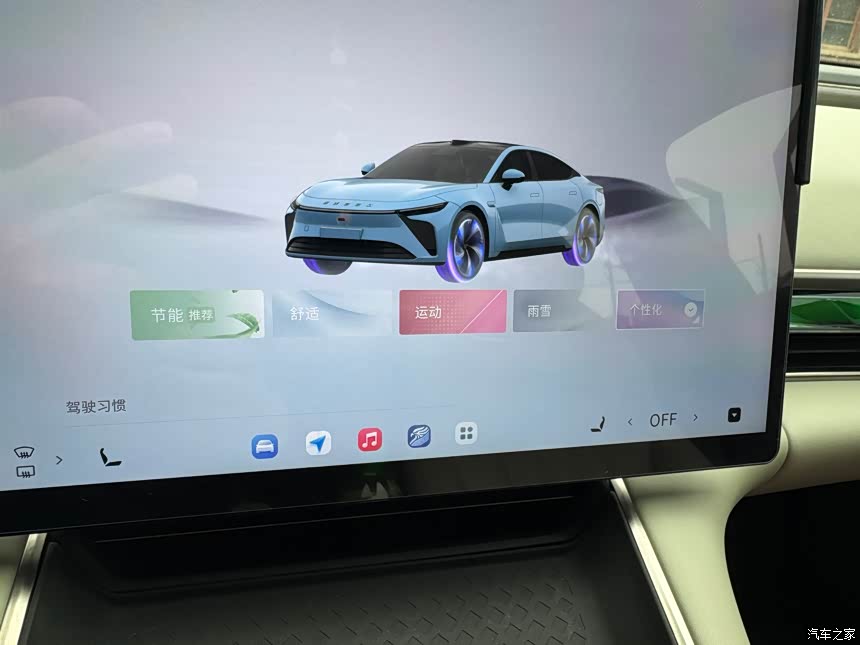 驾驶舒适性做的不错,家用方向的车基本上不会太差,再加上空悬+CDC,调节度很高,悬架高度,软硬,刹车都可以在对应的驾驶模式就可以调节,还可以根据自己的习惯自定义模式。别的电车没注意过,这车刹车有一个儿童模式和防晕车模式,这功能是真不错,平时家人孩子在把这个打开,挺有效果的。