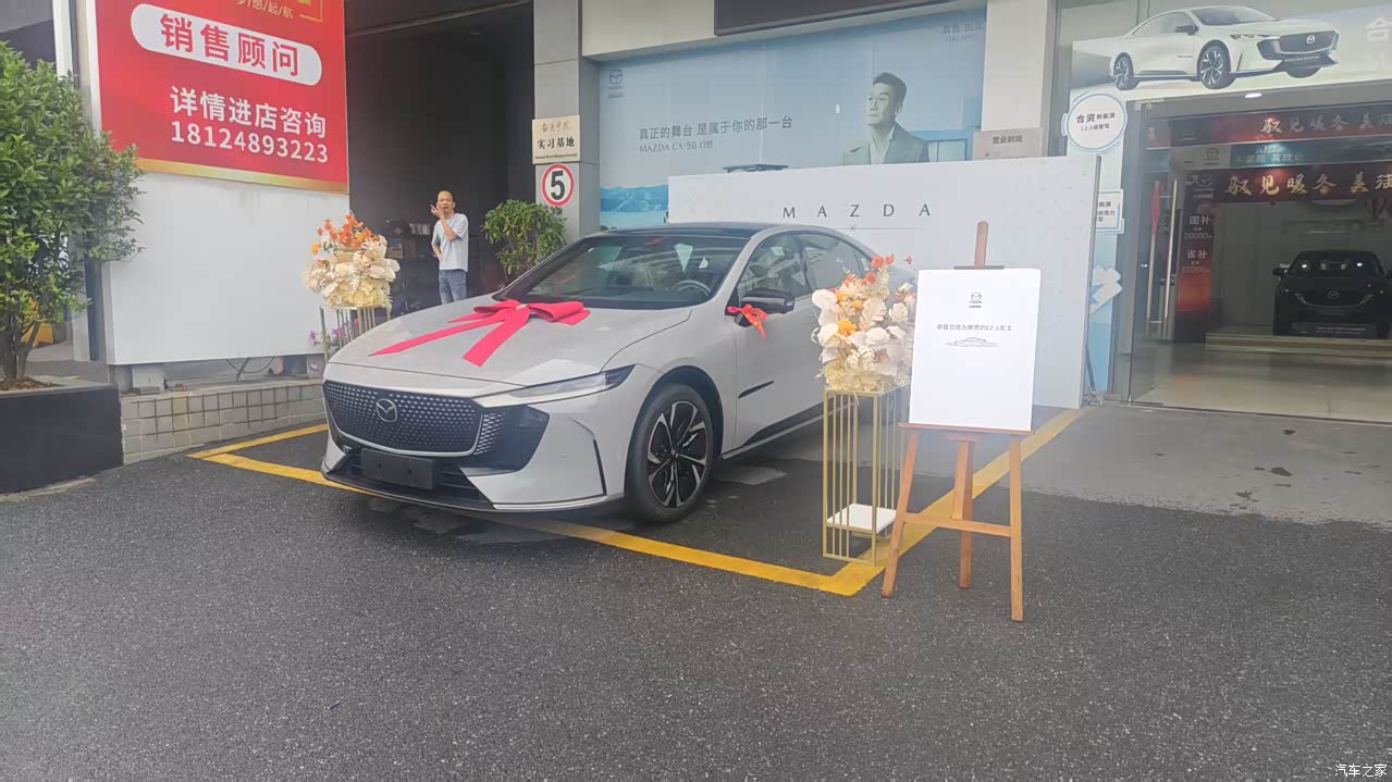 终于提车!朗月灰马自达EZ-6纯电智雅版真实体验! 等了快一个月,终于把EZ-6开回家了!我选的是朗月灰外观配深棕色内饰,实车比照片还帅!作为小白车主,开了一周多,说说最真实的感受吧~ 以前开过朋友的老款马自达,就觉得方向盘特别听话,EZ-6完全继承了这优点!转弯稳得一批,超车一脚电门直接冲出去,但加速不会让人头晕(坐过某新势力的车差点吐了…)。最惊喜的是底盘,过减速带“咚咚”两下就完事,不像有些车颠得人屁股疼。无框车门本来担心噪音大,结果关上车窗连隔壁车按喇叭都闷闷的,隔音真的可以!