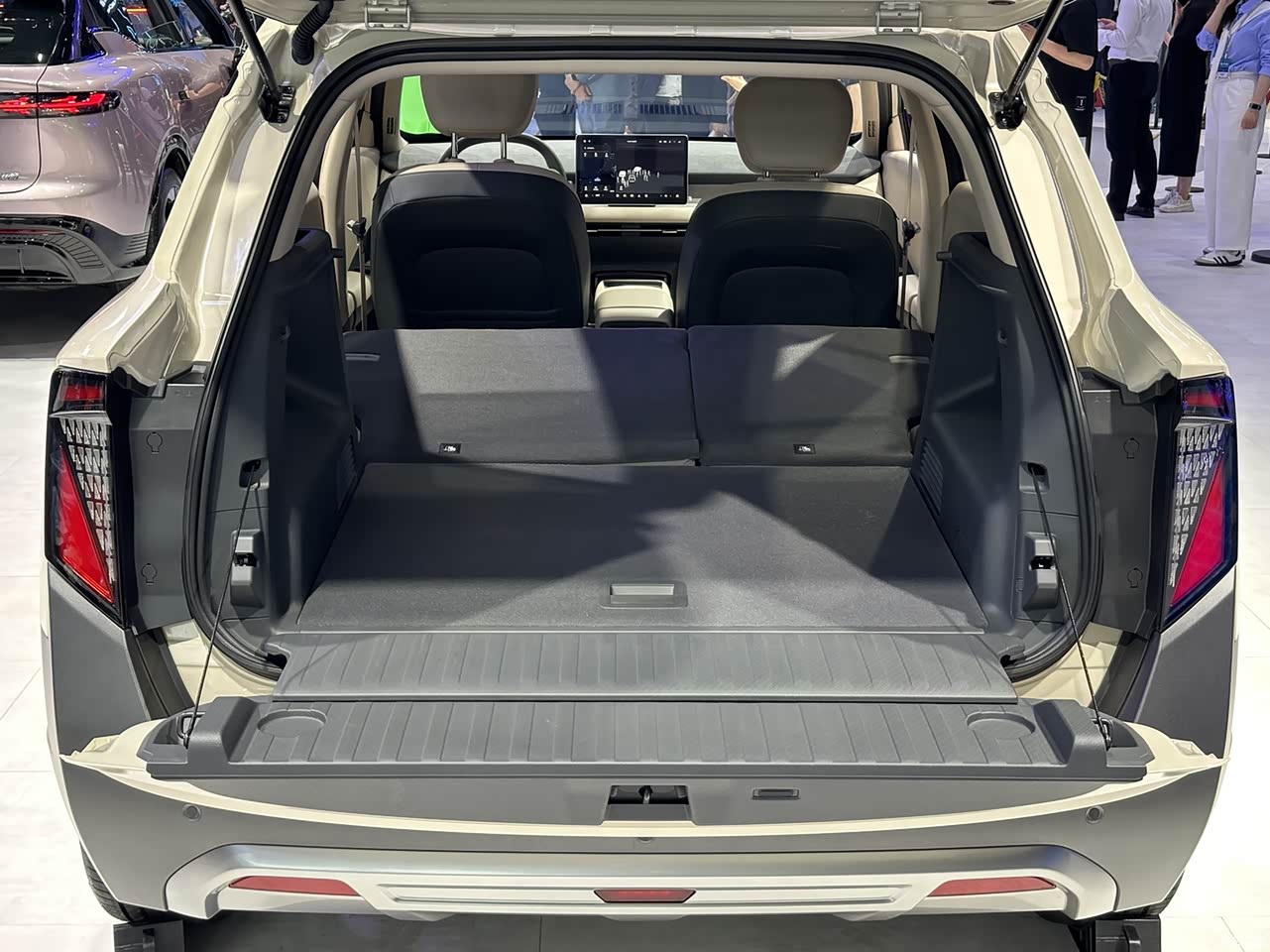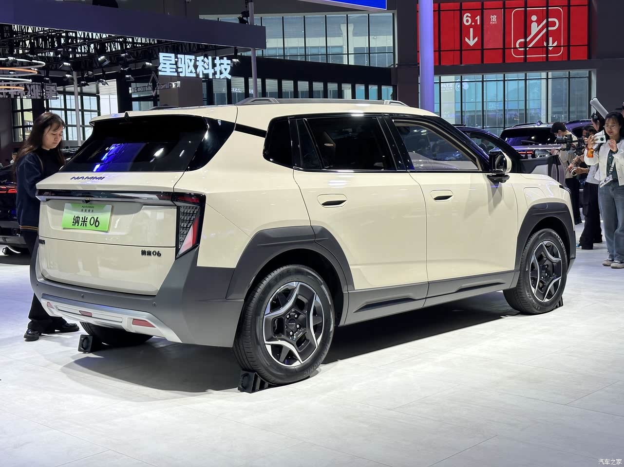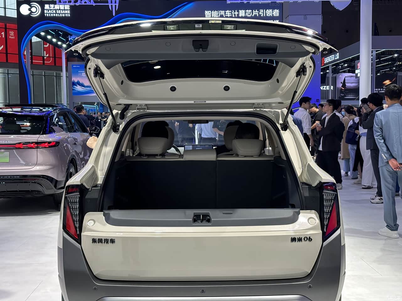 作为一台小型SUV,轴距达到了2715mm,这就让纳米06的空间在这个级别来说还是非常不错的。车顶采用全景天幕的设计,车内的纵向空间会更宽敞,空间体验感也会更好。后排地板采用纯平的设计,提升后排的乘坐舒适性。后排座椅放倒后可以和后备厢底板形成一个平整的空间,露营或者装东西都可以,实用性很强。后备厢下方还有一个储物格,可以放一些隐私或者不常用的物品。车头还有一个前备厢,可以放一些有气味的物品,钓鱼的朋友可以把鱼放在里面,不用担心水弄湿车内,进一步提升车辆的储物能力。