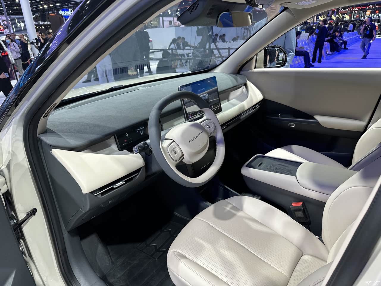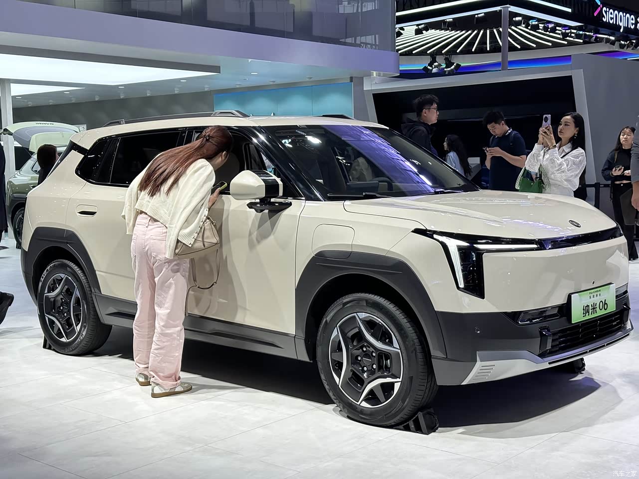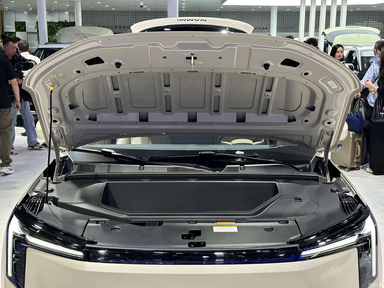 作为一台小型SUV,轴距达到了2715mm,这就让纳米06的空间在这个级别来说还是非常不错的。车顶采用全景天幕的设计,车内的纵向空间会更宽敞,空间体验感也会更好。后排地板采用纯平的设计,提升后排的乘坐舒适性。后排座椅放倒后可以和后备厢底板形成一个平整的空间,露营或者装东西都可以,实用性很强。后备厢下方还有一个储物格,可以放一些隐私或者不常用的物品。车头还有一个前备厢,可以放一些有气味的物品,钓鱼的朋友可以把鱼放在里面,不用担心水弄湿车内,进一步提升车辆的储物能力。