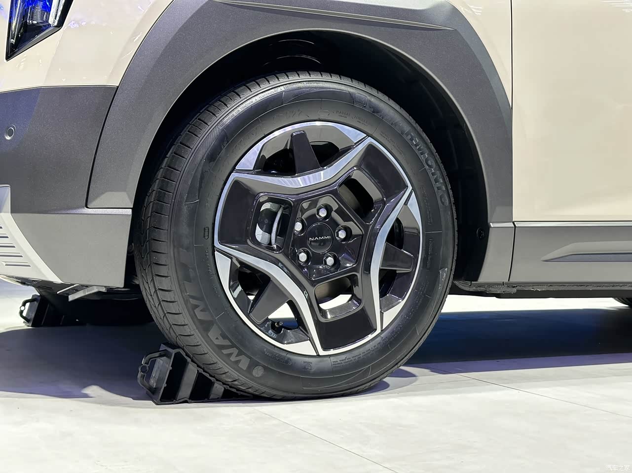 外观造型比较硬朗,线条非常明显。车身四周有一圈防刮条的设计,车顶还有行李架,让外观看上去有越野风的感觉。
