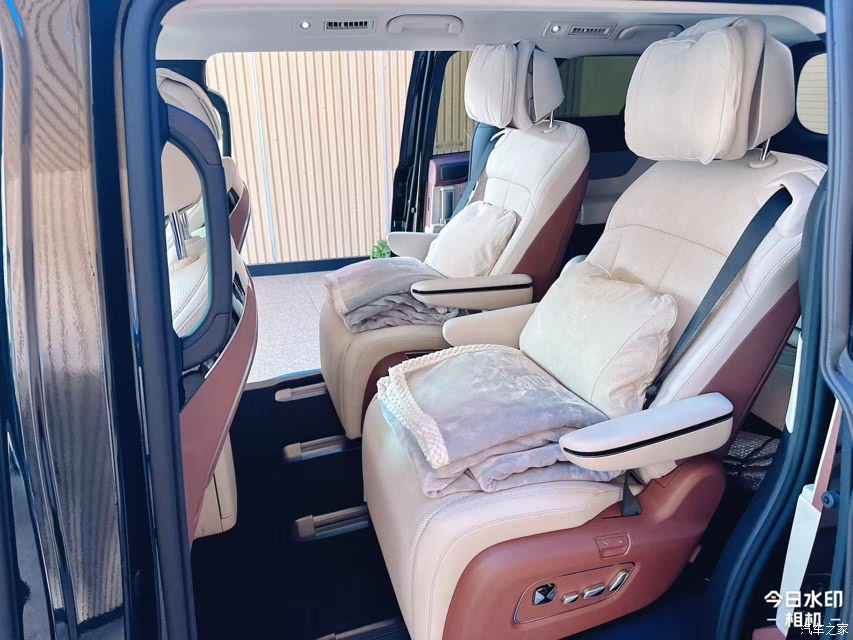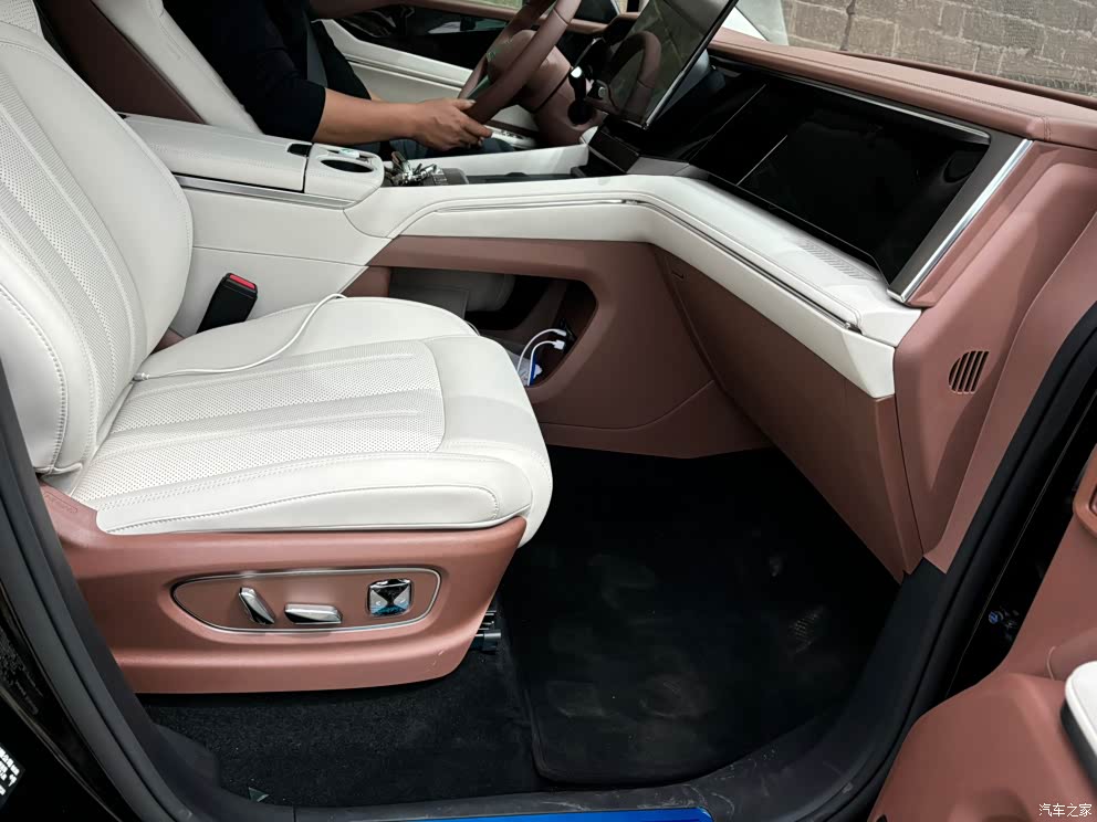 首先内饰的配色个人觉得很温馨,干净,米白色的座椅除了不耐脏,其他都挺好的,真皮的座椅柔软适中,每个座椅都有独立的电动调节,按摩很巴适,特别表扬一下后排的独立空调的开关,非常人性化的一个设计。