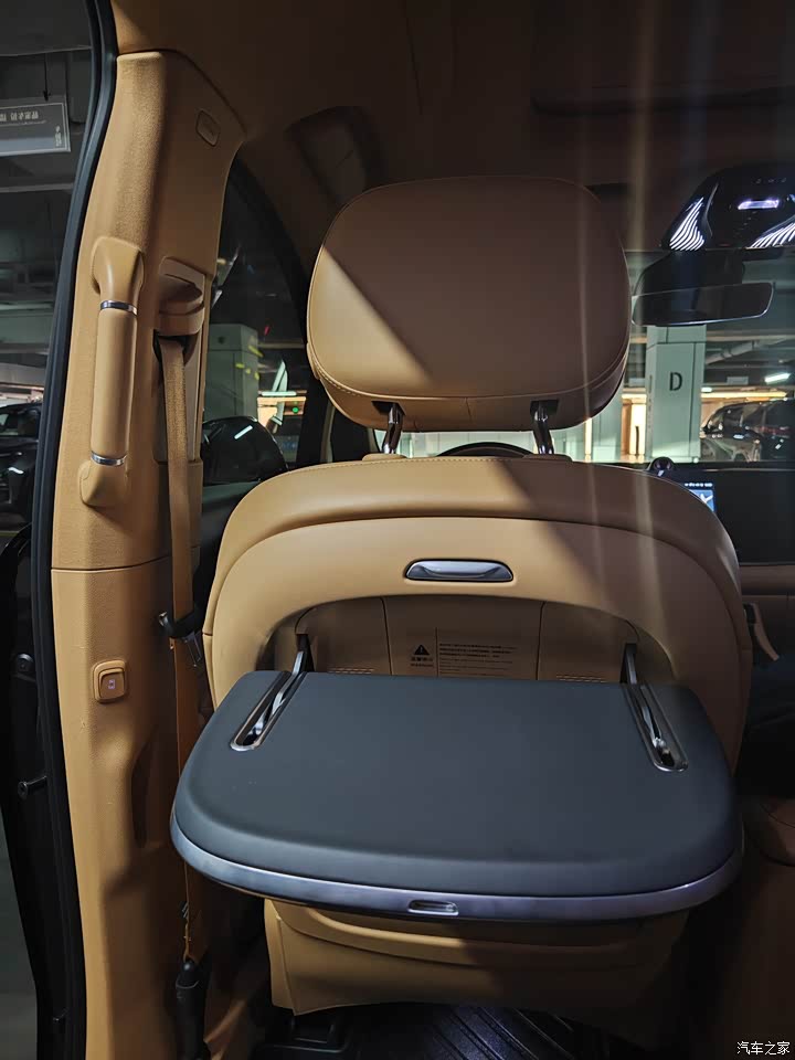 中控台一体式贯通三连屏的黑色边框影稍大些,但不影响它的美观和科技感,我选的内饰是黄色,坐上去很有高级感,而且耐脏。二排座椅柔软度和支撑性很好。长时间坐也不觉得累。小桌板很实用,杯架设计也很方便,座椅调节按键也很简单,家里老人也很容易上手,搭配上我买的遮阳帘,私密性很强。