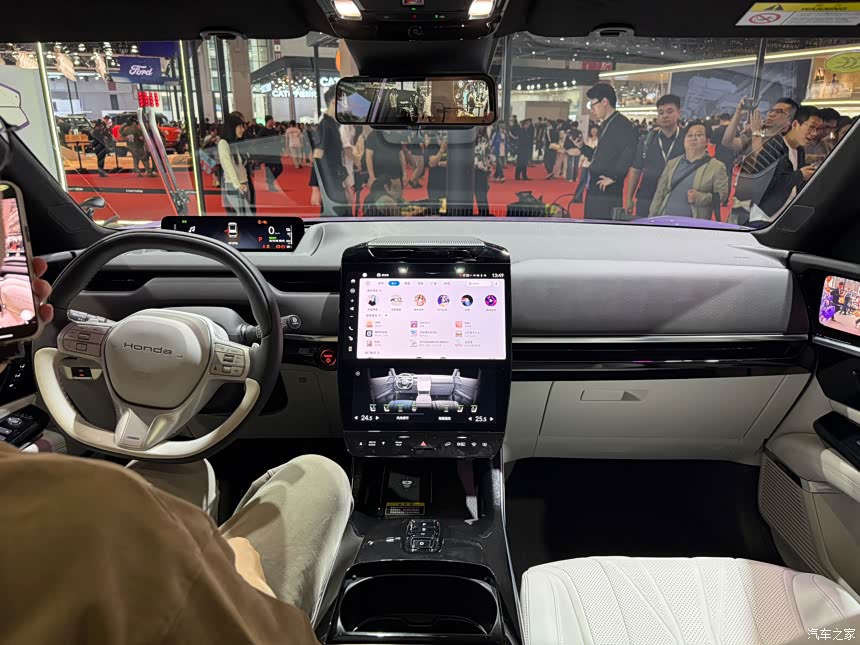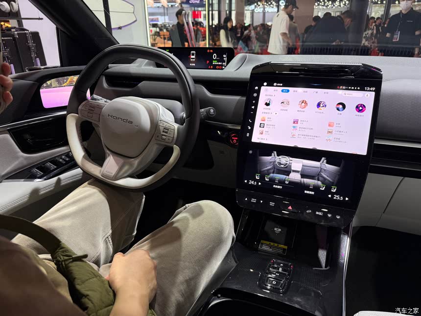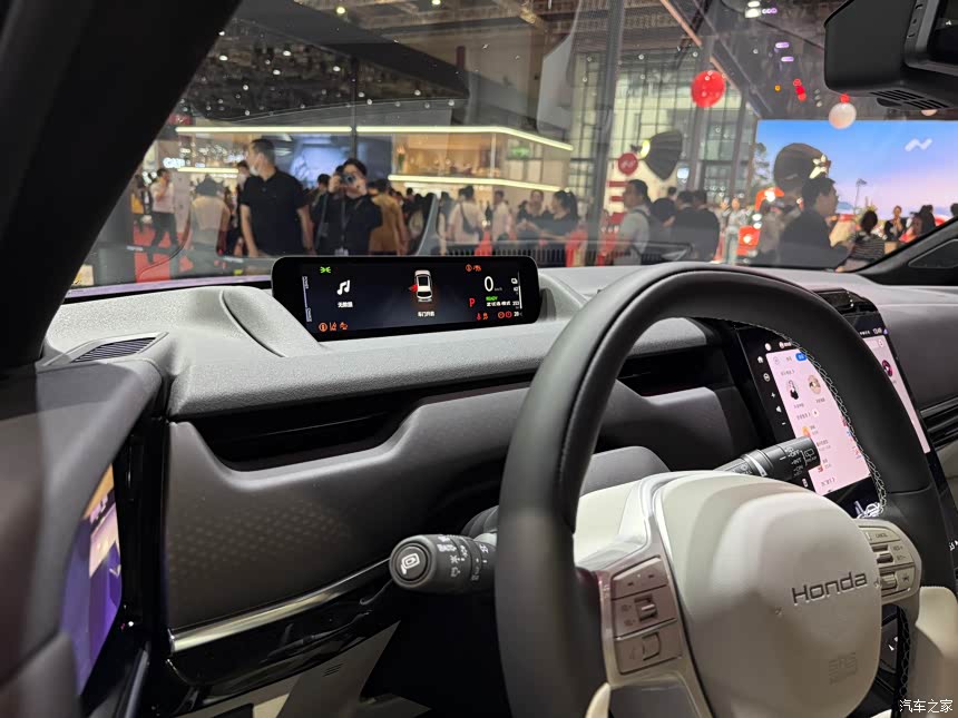 内饰的设计还是OK的,比他家自己出的GT车型好看多了。全车一共有三块屏幕,分别是主驾驶的9.9英寸长条形屏幕,还有12.8+10.25英寸中控屏幕,搭载了AI开放式大模型和科大讯飞语音,所以整车的智能程度在车展上体验了一下,感觉很灵敏,很方便很智能 左右两边的屏幕是电子后视镜的屏幕,感觉本田的这套内饰真的很好看,我很喜欢。 而且车顶的天幕是电子调节的,对于怕晒太阳的人很友好。听说这个屏幕采用双层度膜结构,可以实现95%红外线隔绝率,这样夏天的时候车内也不会晒。我觉得这个东西就非常有必要,因为现在的网约车很多都是全景天幕,又晒又热!
