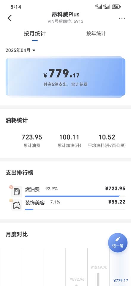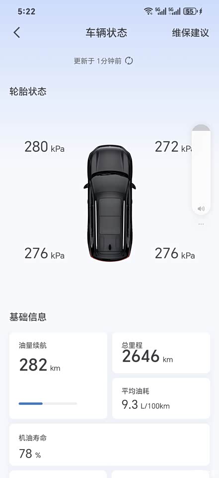 目前实际加油算出油耗为百公里10.52L,对于一个近2吨的车子,还算表现不错。