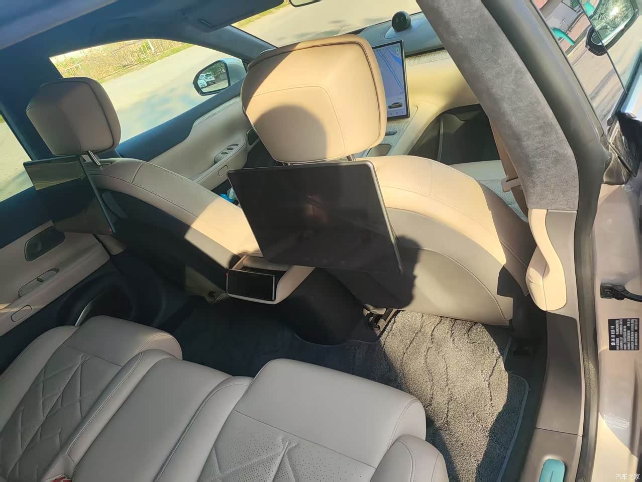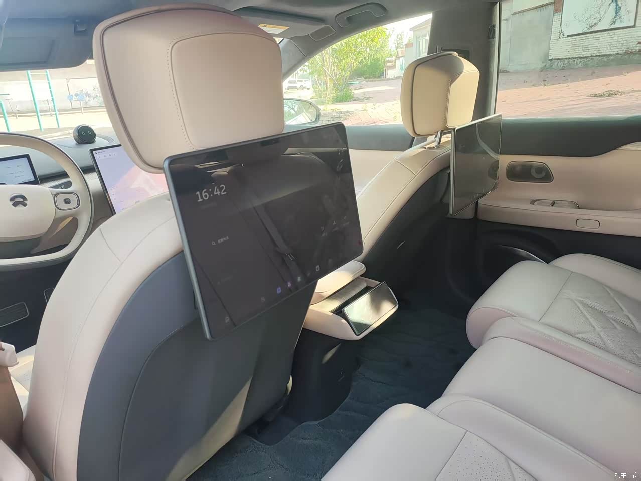在行政版ET7上最让人惊艳的智能化体现就是后排的两块行政互联屏,也是最终让我痛快买车的一个吸睛亮点。 NIO Link全景互联行政屏,可以做到后排乘坐的乘客一人一屏,专属得体,甚至还可以手机投屏文件至行政屏。车上办公的时候就可以同步跟客户讲解合作方案,将出差路上的时间也充分利用了起来。 不仅如此,这两块屏幕还内置了人眼追踪功能,专为“晕车人士”而生,遇到颠簸路段,ET7的空气悬架吸收了大部分路面的冲击势能,而剩下的晃动感互联行政屏也没有放过——通过人眼追踪这两块屏幕可以做到始终与观看人位于同一频率从而避免了眩晕导致的晕车不适感。实在是高端车型的集大成所在!