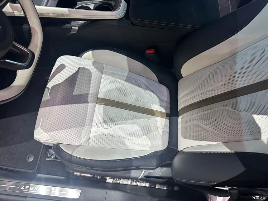 极氪007GT在内饰的设计采用了更为年轻时尚的拼接色设计,整体风格年轻时尚的同时又不失高端豪华感,整体内饰设计兼顾家用和商务。极氪007GT的座椅设计尤为出挑,不仅坐椅材质舒适柔软,而且让人乘坐感觉包裹性极强,乘坐舒适的同时也让人感觉安全舒心。极氪007GT门板设计采用简约时尚的设计风格,扬声器设计在门板上,采用星点状向外阔散的设计,让人欣赏音乐时有着身临其境的感觉,其它内饰设计也非常用心用力,不仅是内饰门把手,还是化妆镜的设计都非常方便实用。