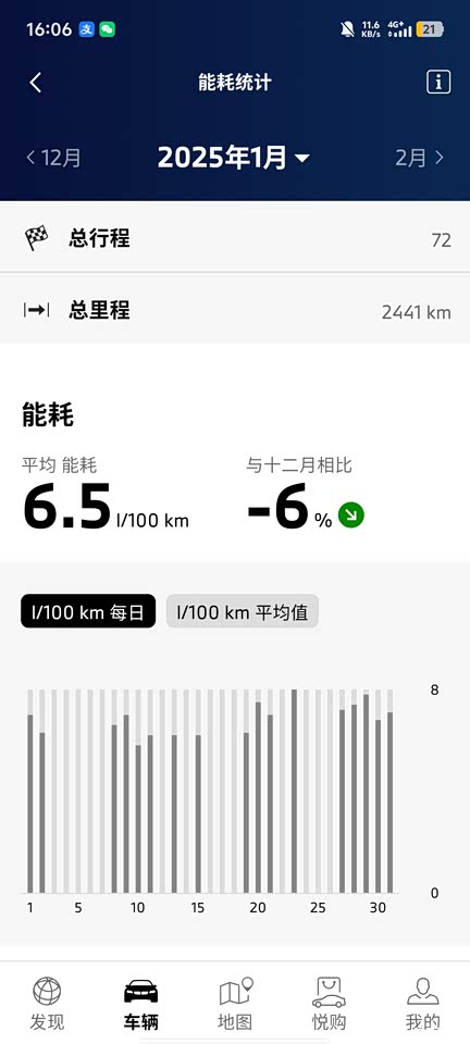 如果正常开的话,油耗也就在六七个油附近,我这个月开的比较猛,就比较高,像1月份开的比较平缓,就只有6.5个油,正常情况下,一箱油在市区跑800公里附近,如果是高速上的话,得小1000公里。有时候和别人去讨论这个车的油耗,别人都不敢相信,感觉我是骗他们一样。
