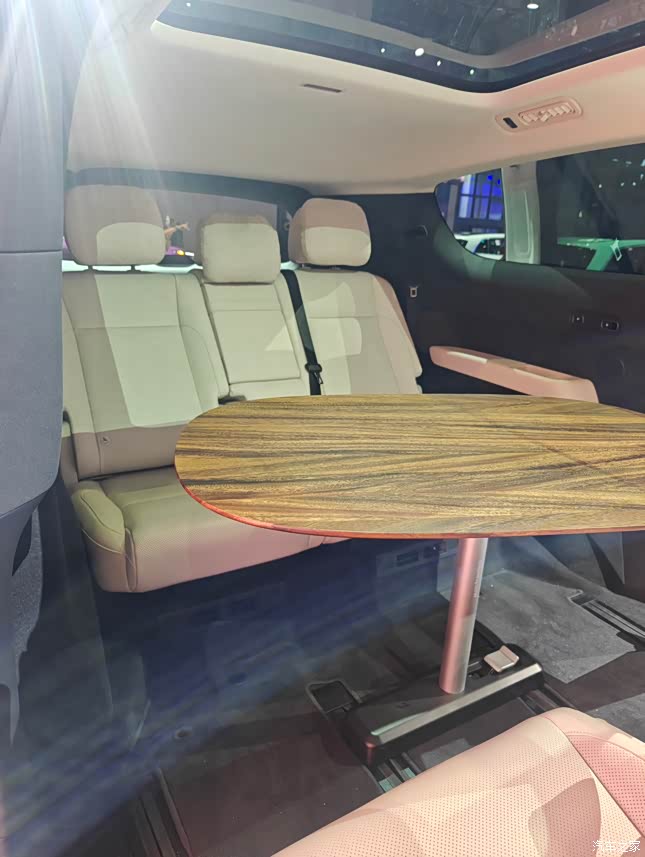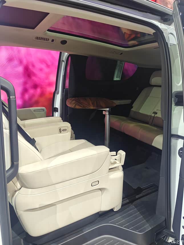 看到车内第一眼:这不是移动的北欧客厅吗? 刚靠近就被治愈系配色击中——浅木纹饰板、奶油白皮革,空气里仿佛飘满了家的味道。 “比我家沙发还舒服”——这是试坐后脑子里蹦出的第一句话 MEGA Home这次可以说是在舒适家用上面彻底放飞 厚厚的填充层让人坐下去像跌进棉花糖,久坐也不会腰酸