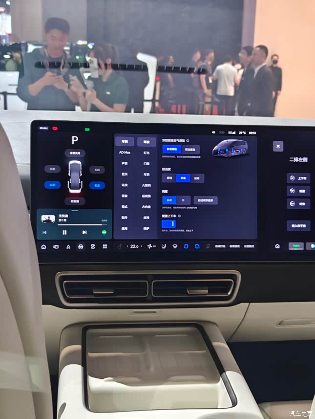 配合上双腔魔毯空气悬架,可以在驻车后降低悬架高度,简直贴心加倍~ 你以为这就完了?人家连细节功能都不放过! MEGA Home特别带来了18点热石揉捏按摩 还首发了吹吸一体的呼吸式座椅通风 把车开到山野湖边,后排一键躺平,小桌支起来放上零食饮料,打开喜欢的电影 嘶~~~想想都不要太快乐,简直把仪式感卷到天花板