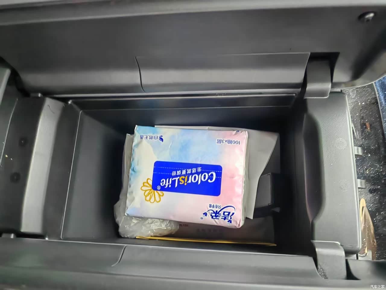 中央扶手下有很大空间可以放置物品,女孩子放一双高跟鞋都没有问题,手套箱空间也足够使用,中央扶手里面也是一个比较大的垂直存储空间,可以放置很多物品。