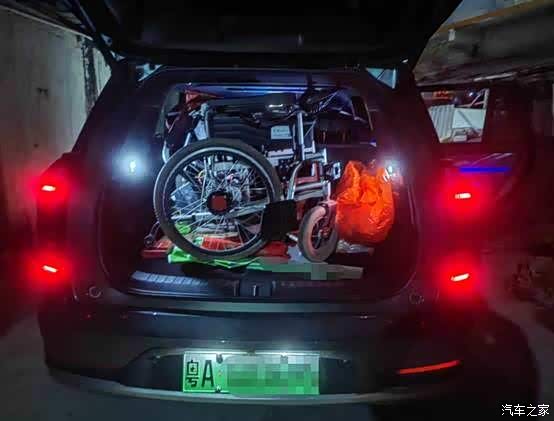 后尾箱同级别超大,二排座椅没有调整,正常坐人情况下,曾经拉过一次电动轮椅,把我也给惊呆了。