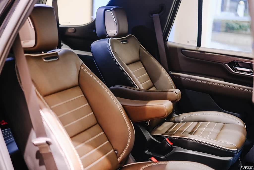 这次探店看车给我留下了颇多值得玩味的印象,比如内饰的美式豪华范儿、拉满的舒适配置,但是总结起来,有两点是我个人最为满意的:①2025款YUKON育空延续了美式全尺寸SUV一贯的硬朗风格,不仅能满足家庭用车场景,比如携带家人轻度、中度的旅行,而且它也有较强的商务属性,这是我最喜欢、印象最深刻的因素;②“大”到没朋友的空间表现。前排座椅空间表现还算不上惊奇,尤其是第二排空间,那叫一个开眼了,我觉得是我见过最大的空间,没有之一。