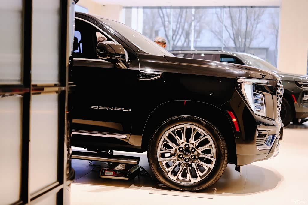 ①这是我个人最为青睐的地方,2025款YUKON育空采用了高大、硬朗的造型,尤其是硕大的前进气格栅搭配高耸的车头,展现出了美系大型SUV的强大气场。此外,新车还配备了矩阵式LED大灯,拥有不错的科技感。 ②车身尺寸方面,其长宽高分别为5357mm*2058mm*1940mm,轴距为3071mm。车身侧面,一条力道十足的腰线从车头贯穿至车尾,勾勒出整车的力量感。车尾方面,新车配备C字形LED尾灯,尾灯中央还采用贯穿式银色饰条相连,进一步拉伸了横向视觉宽度。 ③轮圈方面,两款车型均采用了22英寸大尺寸轮圈,其中德纳利巅峰版的轮圈为双色设计,视觉效果更为动感。两款轮圈匹配的轮胎规格均为275/50 R22,非常霸气。