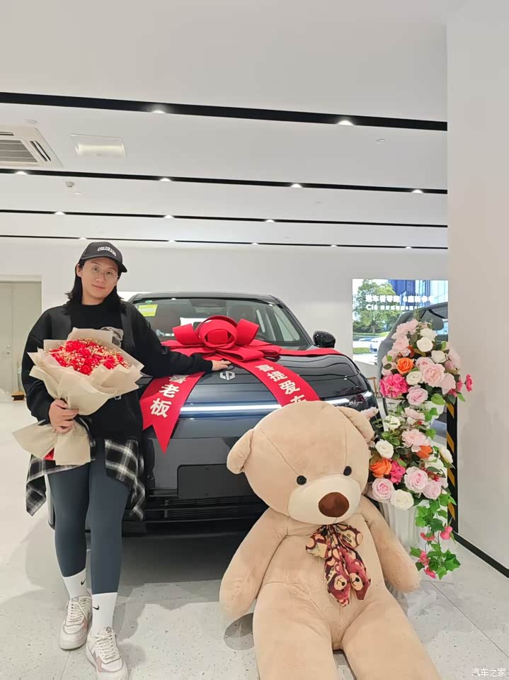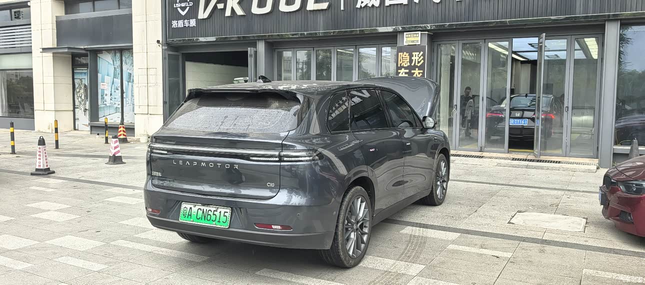 在外观方面我还是挺喜欢的,看起来很大气就跟理想一样,一个不注意的话感觉就是理想。底盘也比较高,这个漆面看着也挺喜欢的。新车刚到手,我就已经加车衣啦。