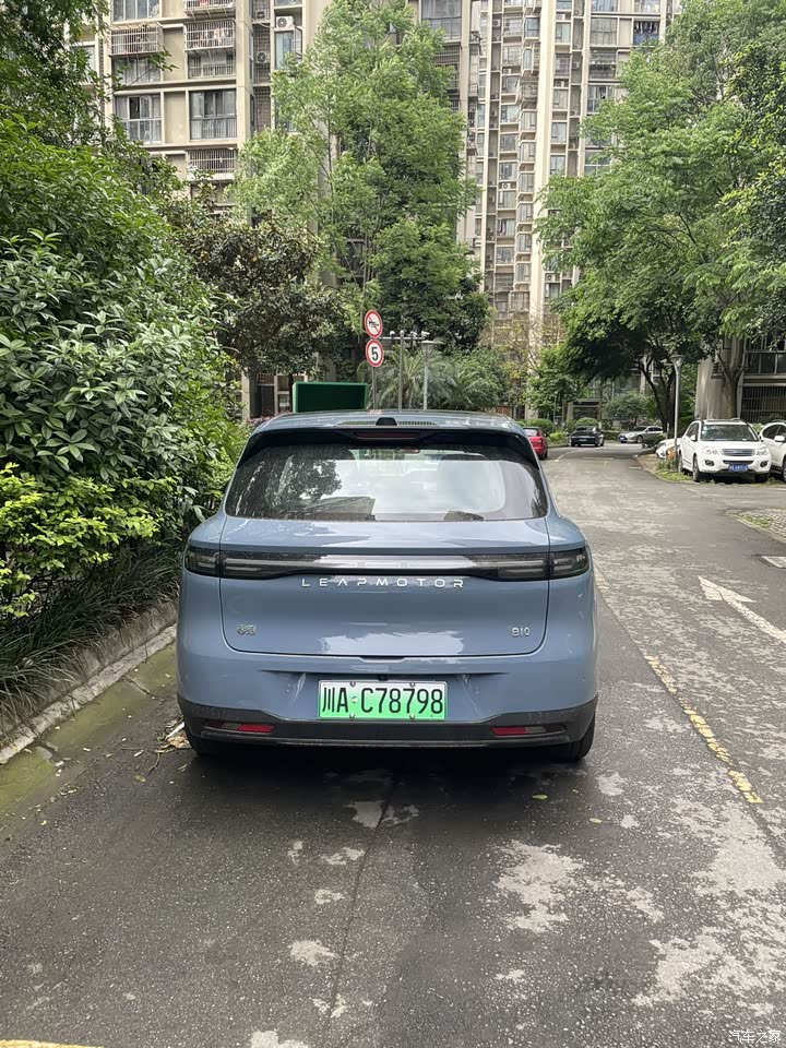 最满意: 当然是星夜蓝帅气的外观,加上激光版超值的性价比,还有整车三电终身质保,非常放心。 提车价格: 119800-2000(大定优惠)-2500(区补)+4200(保险)+120(自己上牌)=119620 购车原因: 我们居住的小区是一个没有地下车库的老小区,地上车位排了两年多终于快排到号了,加上后面媳妇上班通勤的刚性需求,急需一辆体型不大,智能化程度稍高的车车。 前面发布的领克Z20、深蓝S05、海狮05EV大众ID3都有看过,Z20机械素质不错,用料扎实,实地看车之后发现后排座位太短了,后排偶尔乘坐还是不太舒服,适合一人或者两人使用。S05无框车门很帅,空间也挺大,电池宁德时代,价格也合适,但是实地看车之后不太能接受它的外观,特别是后门的指示灯感觉不太协调,遂pass。海狮05EV去看了展车后感觉内饰有点传统,媳妇不太喜欢,也就没看了。ID3是我开过之后最喜欢的一辆,扎实的德系底盘质感,转向精准,后排空间也挺大,外观小巧,只是对我们来说后备箱有点偏小,过年回老家拉年货有点不够用,单纯在城里通勤非常推荐这辆小车车,好开好停。 最后刚好赶上B10上市,劲爆的预售价格加上后期上市还优惠一万,就趁着周末去附近的4S看车,并预约了试驾,一开起来就发现零跑和大厂的联合底盘调校还是有作用,对我一个经常开大众车的人来说,底盘质感完全可以接受,甚至有点出乎意料,看来用三连杆也不是不行,调校也很重要。试驾还有一点比较满意的就是它的7.1环绕音响,12个喇叭听音乐音质还不错,也能隔绝一些风噪胎噪声。试驾后基本就锁定它了,回去考虑了一天就下了小定。 我们一开始本来定的紫外灰内悦享版,想着有现车能早点提车拿下区补,大定当天销售告知店里有几辆510激光特供车可以提前拿车,刚好店里激光试驾车蓝色灰内我们实地看了也挺好看,就从里面选择了同色同款完成大定。 空间: 空间也是B10比较有优势的一点,我身高173,调到我的驾驶位后后排还有两拳多腿部空间,后备箱也足够家庭使用,还有一个下沉空间,网友反馈比较多的后排靠背角度偏直,实际坐过之后也能接受,毕竟我们家后排使用场景不多,偶尔坐坐没啥大问题。 能耗: 最近议论比较多的江苏正力电池,实测下来也没那么糟,目前开了200公里,大部分市区路段,综合电耗13个左右,我开车并不是很佛系,这个电耗也比较满意。看网上评测,即使高速打六折,300的续航也足够回老家了,完全符合我们的用车需求。 车辆装饰: 目前官方赠送的小桌板和头枕都到货了,使用起来还挺不错,看了试驾车的官方脚垫也还行,就用赠送的能量+现金买了脚垫和后备箱垫。车窗膜本来一开始想直接上龙膜畅悦80,贴下来要两千多,后面浏览小红书和ZDM发现国产的科为自然风光系列贴膜好评如潮,参数也不错,价格只有畅悦的四分之一不到,就马上在pdd下单了,到货后第一时间联系卖家安排贴膜,店家服务和贴膜效果都很满意,省下的一千多拿去充电可真香,再次给卖家一个大大的赞。