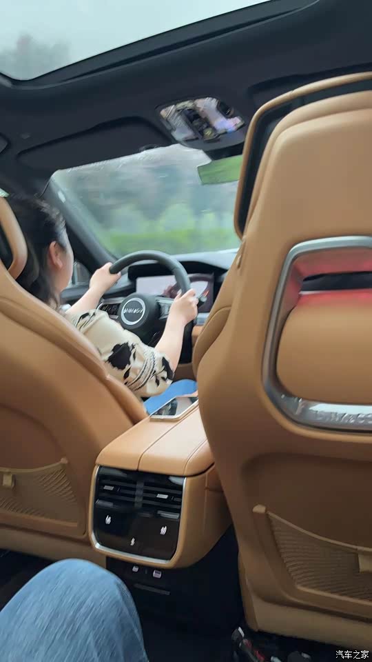 虽然第三排是硬伤,但前两排空间确实优秀。主驾座椅调到最高,我168cm的个子还能有两拳头部空间。储物空间设计也很合理,中控台下方的镂空层刚好塞下我的托特包,门板储物格甚至能竖着放进1L装保温壶。不过要提醒姐妹们,如果经常满载出行,建议选装车顶行李箱。