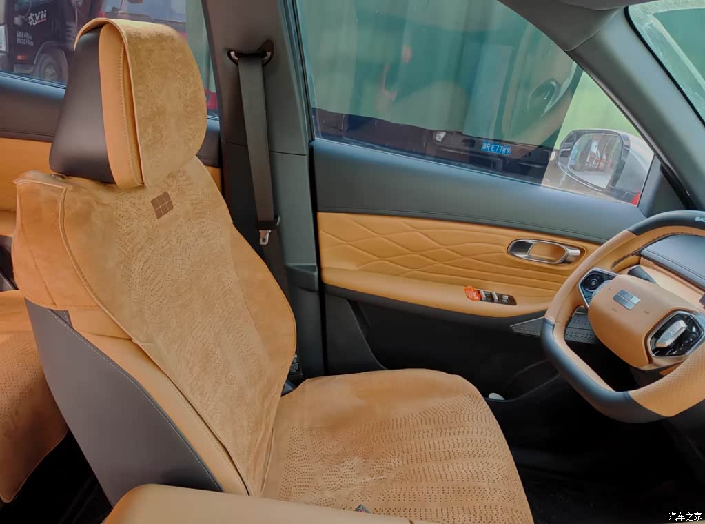 棕色麂皮+金属饰板混搭显轻奢,缝线工艺细腻,但中控台硬塑材质略拉低档次感。棕色的很有质感,耐脏,但是坐垫用了一段时间后有点塌陷,皱了。