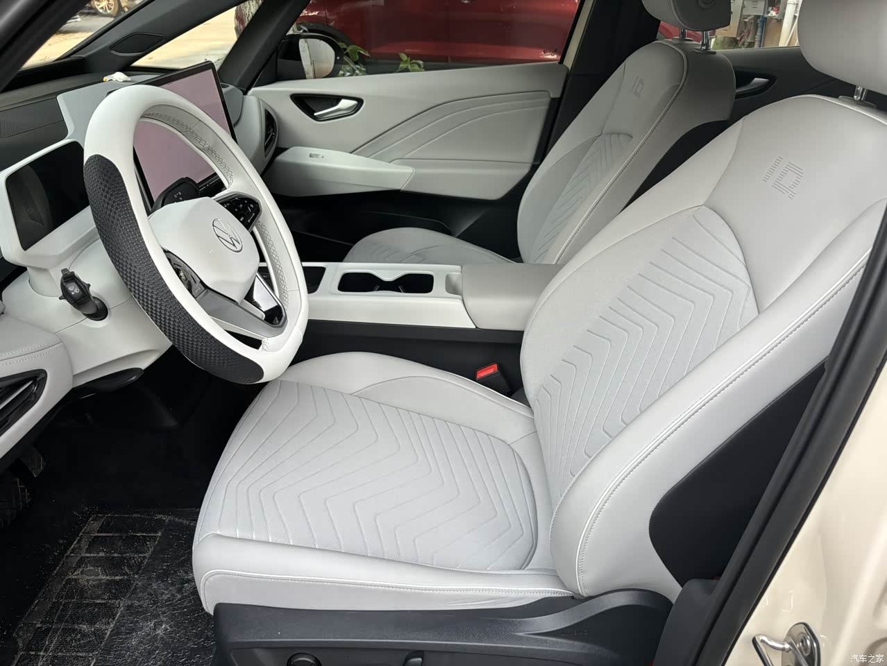 纯白内饰,比较干净清爽,好像去年还要加钱才能选这个配色。