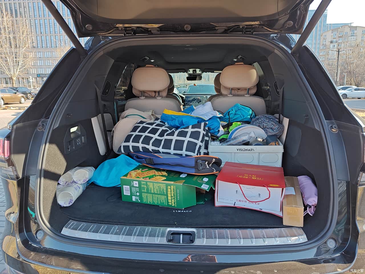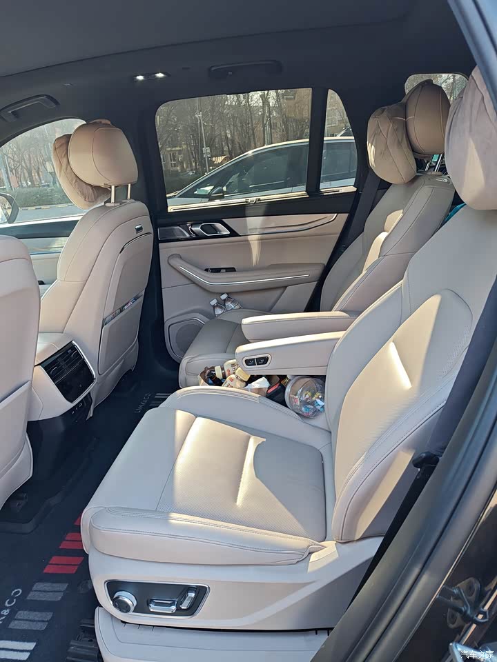 空间可以接受,二排腿部空间比较宽裕,1.8米的身高调好座椅,二排还是比较宽裕的,但三排腿部空间有些局促,不过合理调整座椅后坐人也是没问题的。 后备箱是真的大,可以放很多露营装备,体现了一部大车的好处。